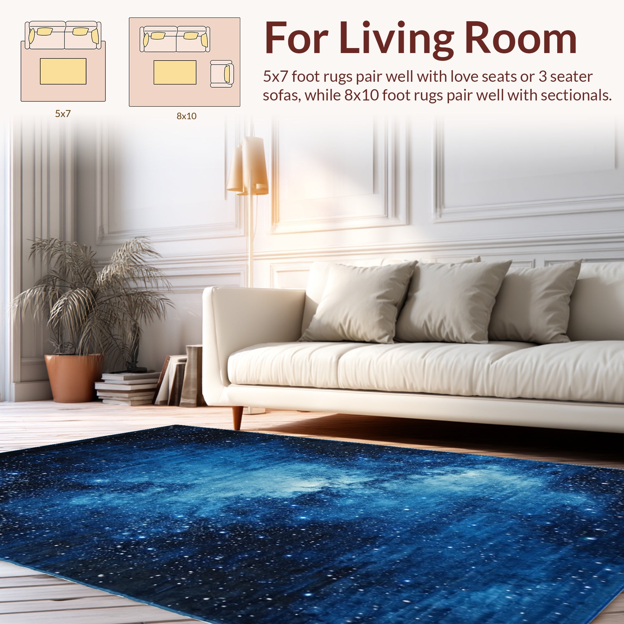 Flatwoven High Traffic Area Rug, Whimsical Starry Night Inspiration, Non Slip, Stain Resistant, Washable Area Rugs for Living Room, Bedroom (Blue) Overview: