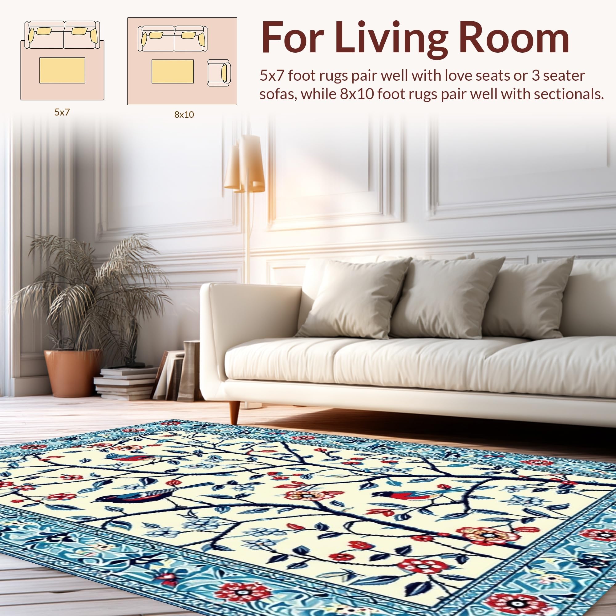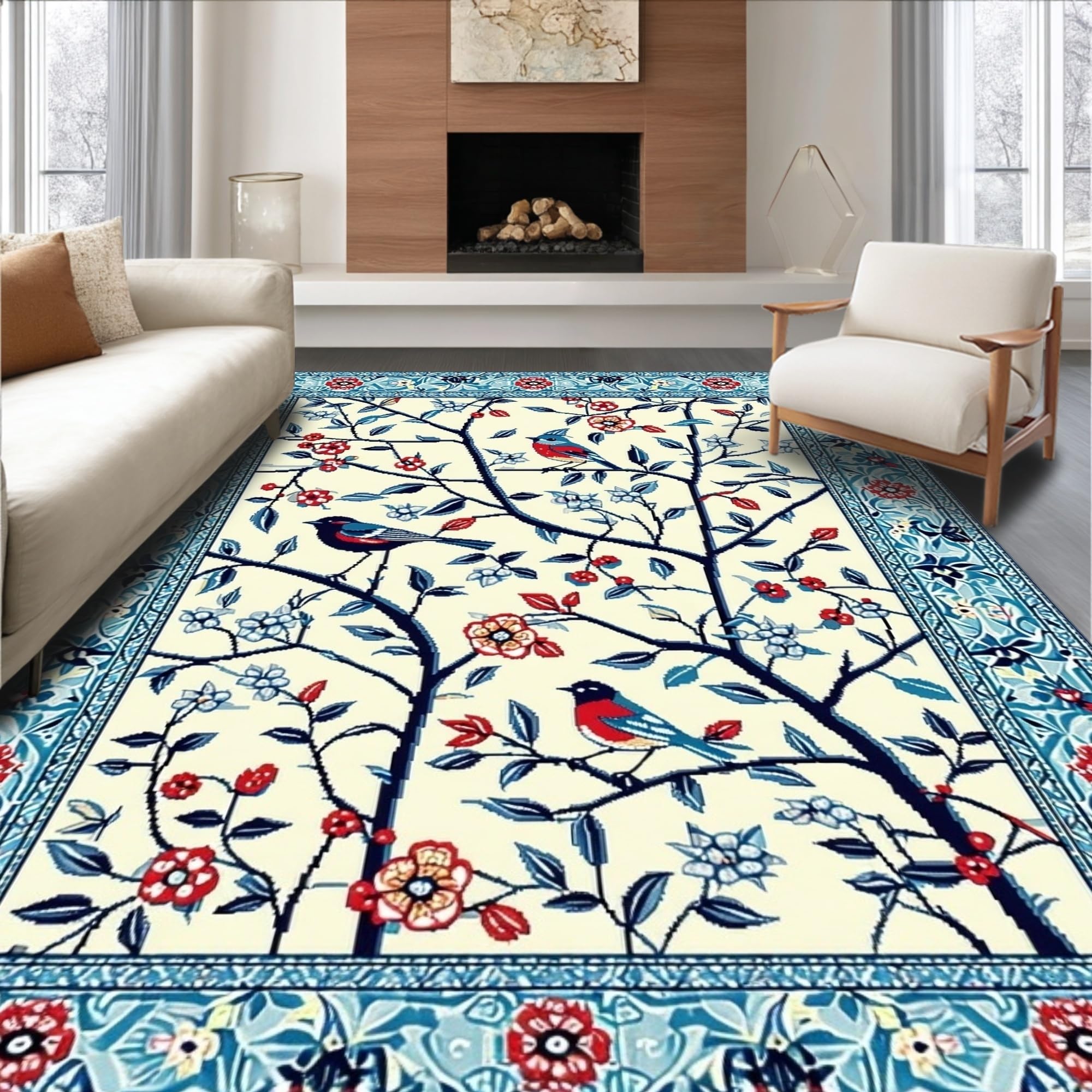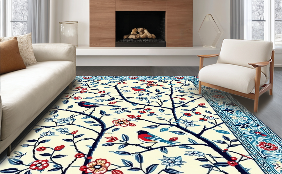 Ultra Soft Area Rug, Non Slip, Stain Resistant, Washable Area Rugs for Living Room, Bedroom, Whimsical Summer Bird Silhouettes(Ivory) Overview: