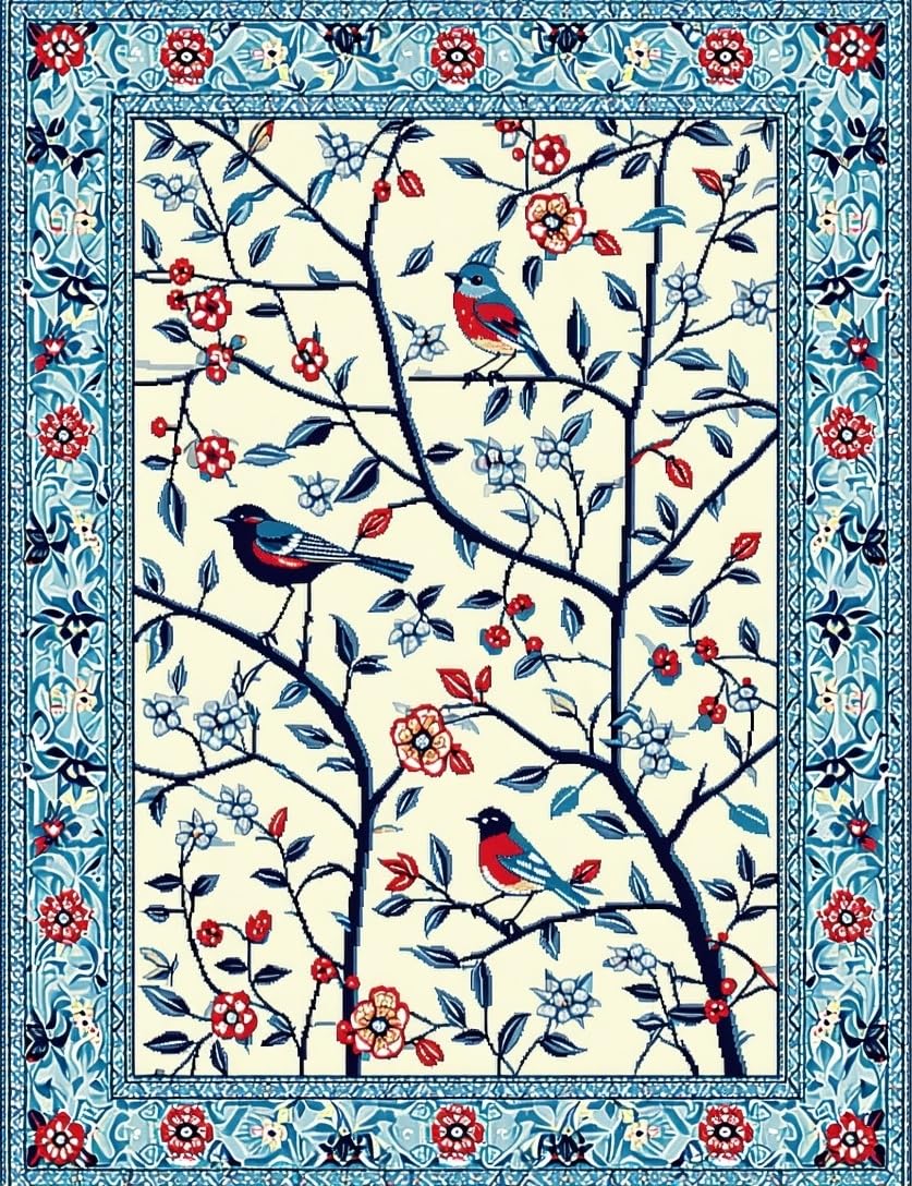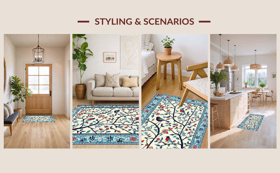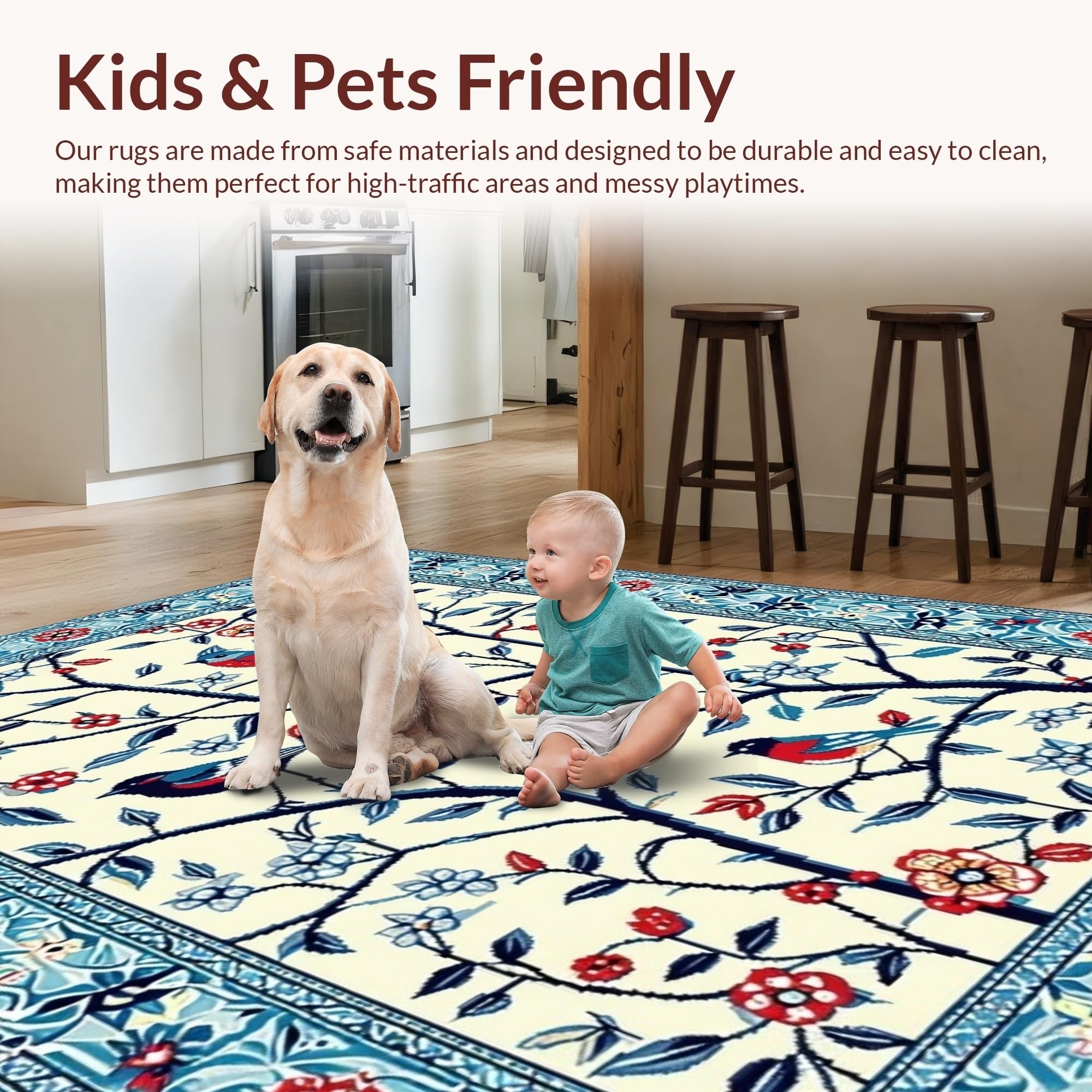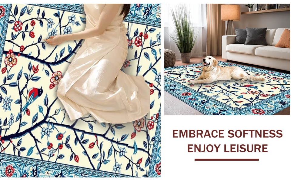 Ultra Soft Area Rug, Non Slip, Stain Resistant, Washable Area Rugs for Living Room, Bedroom, Whimsical Summer Bird Silhouettes(Ivory) Overview:
