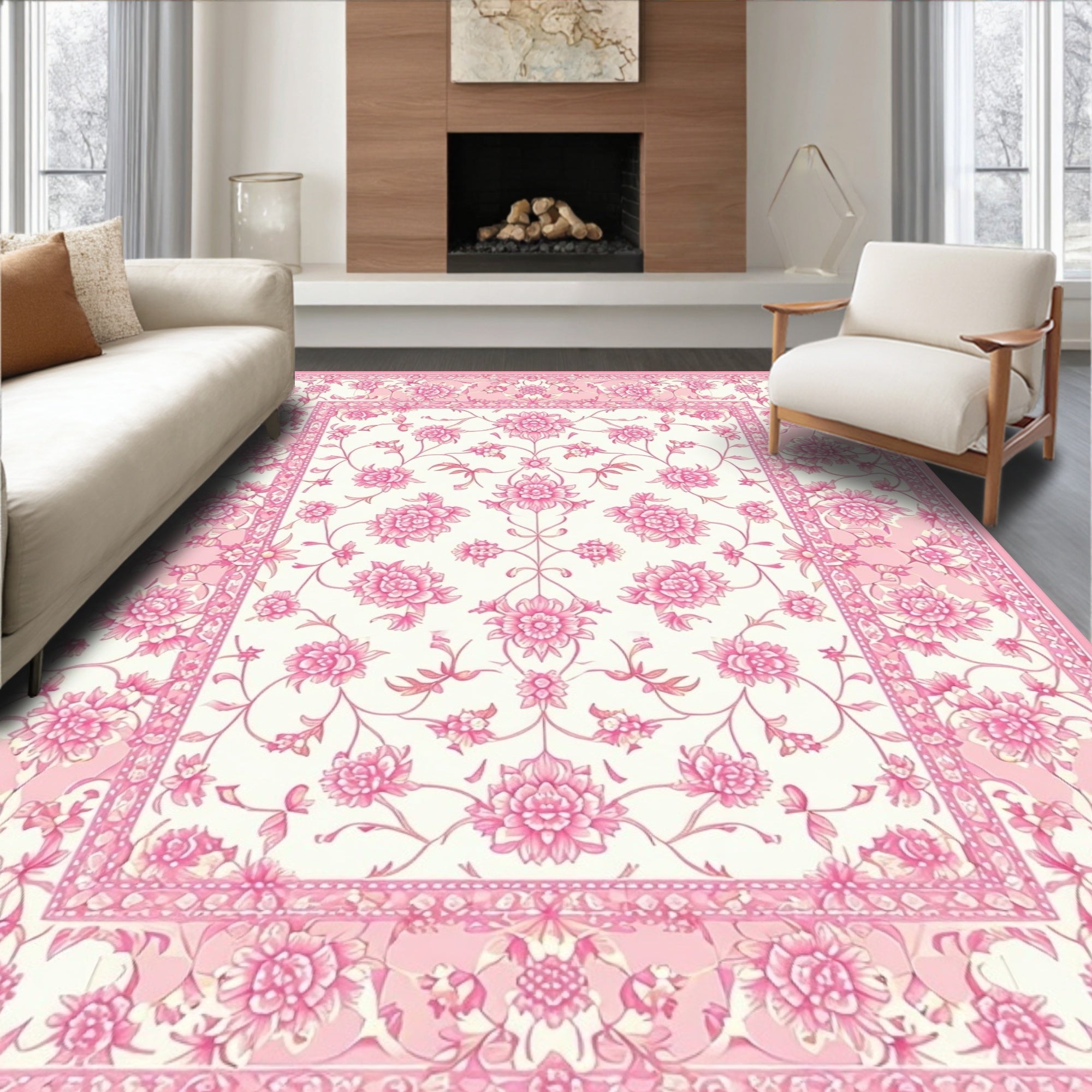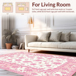 Flatwoven High Traffic Area Rug, Whimsical Tiled Motif Inspiration, Non Slip, Stain Resistant, Washable Area Rugs for Living Room, Bedroom (Pink) Overview: