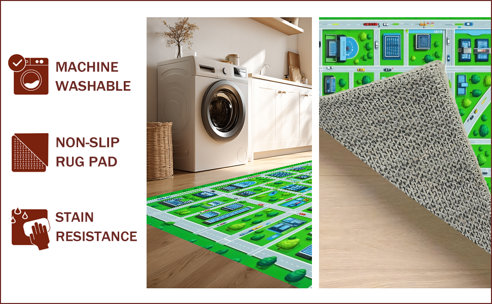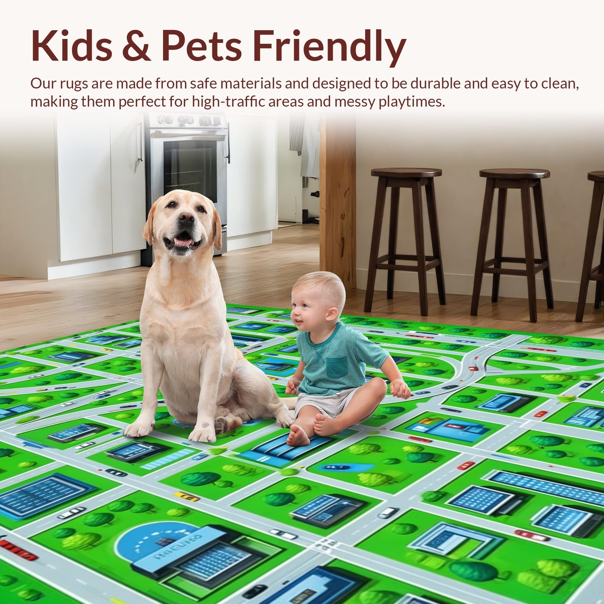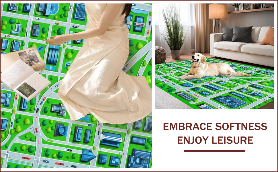 Ultra Soft Area Rug, Non Slip, Stain Resistant, Washable Area Rugs for Living Room, Bedroom, Whimsical Traffic Pattern Rug(Green) Overview:
