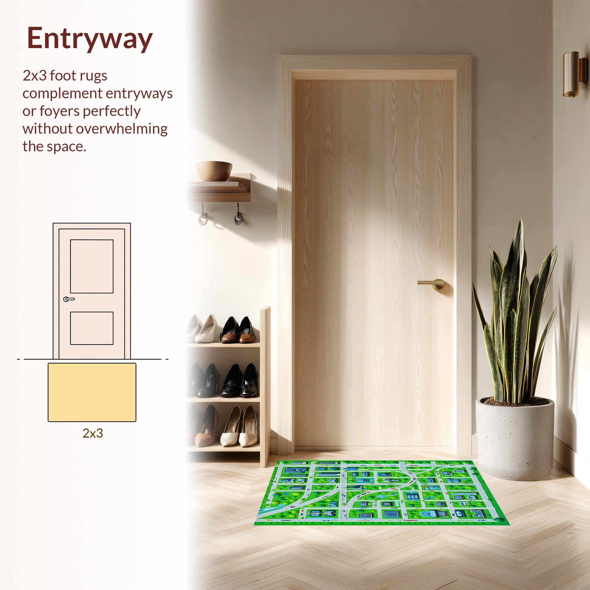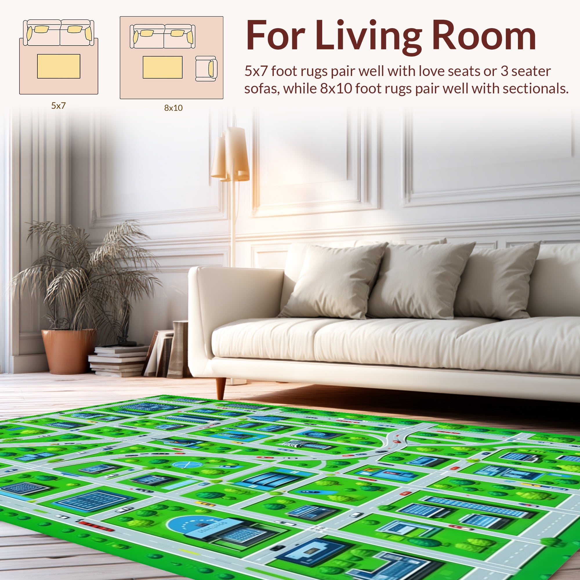 Flatwoven High Traffic Area Rug, Whimsical Traffic, Non Slip, Stain Resistant, Washable Area Rugs for Living Room, Bedroom (Green) Overview: