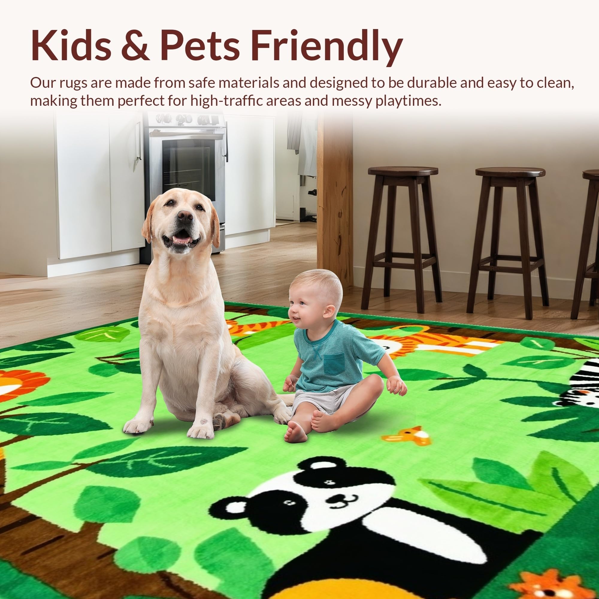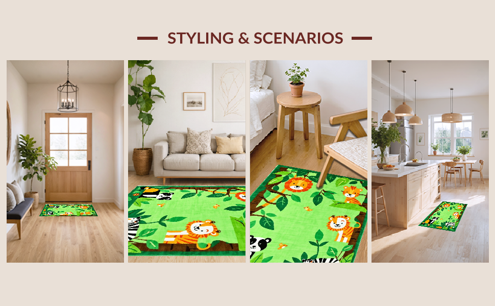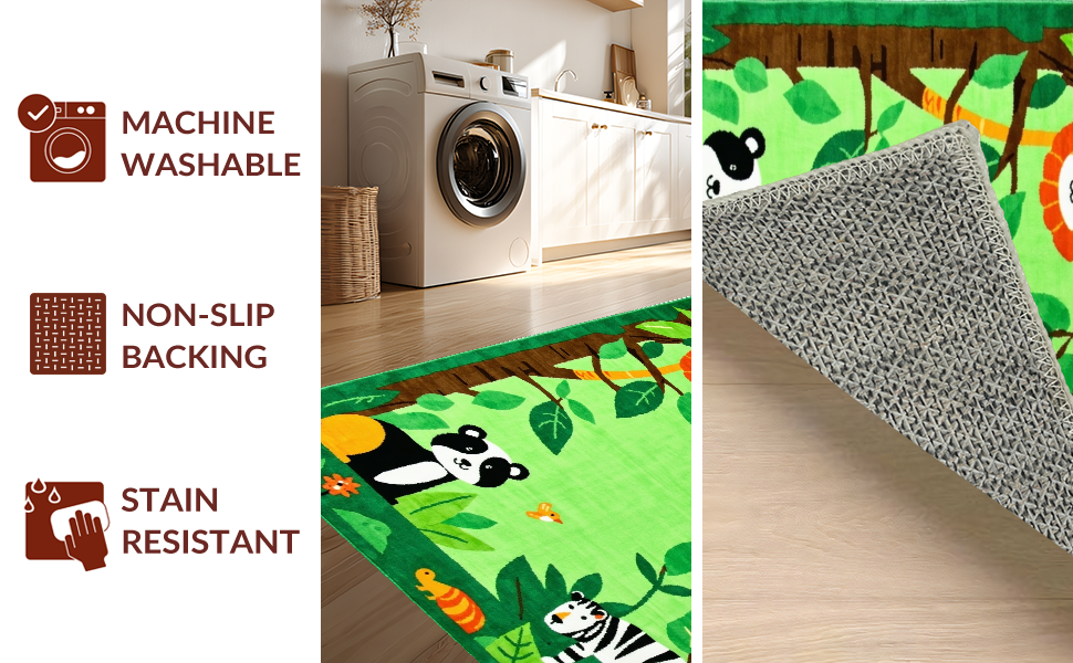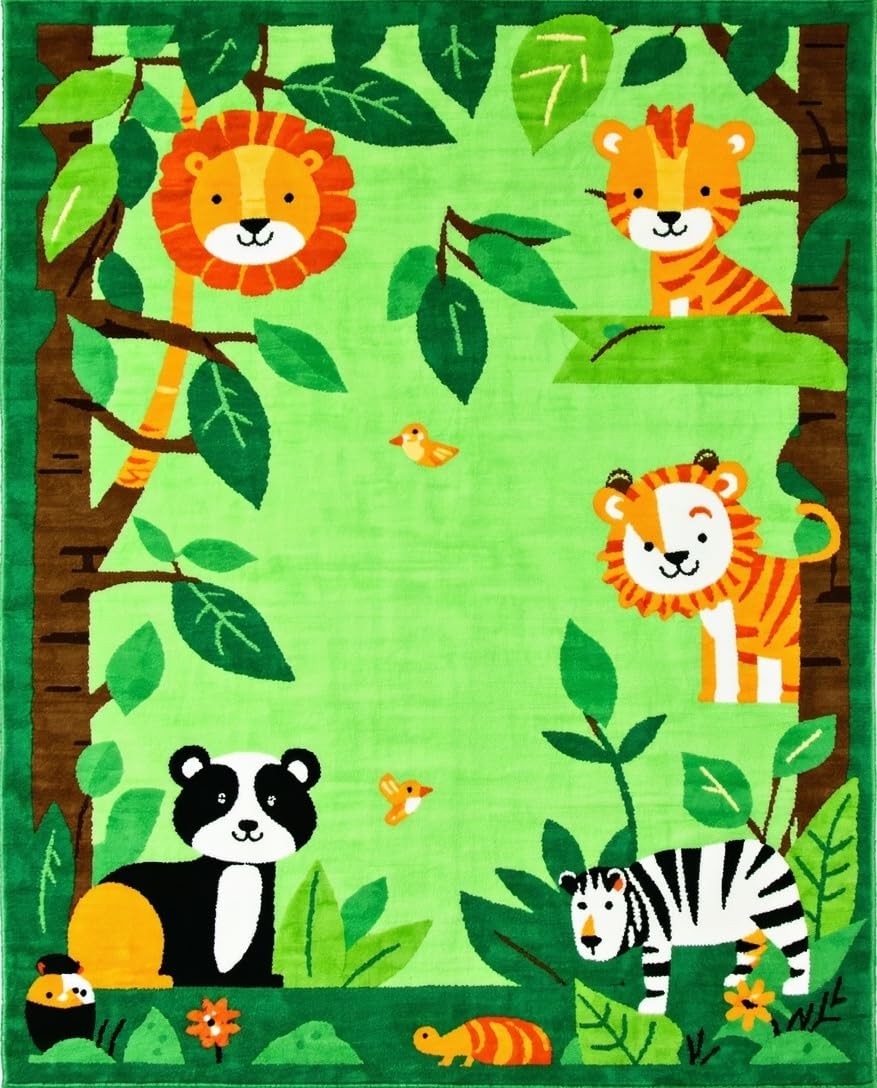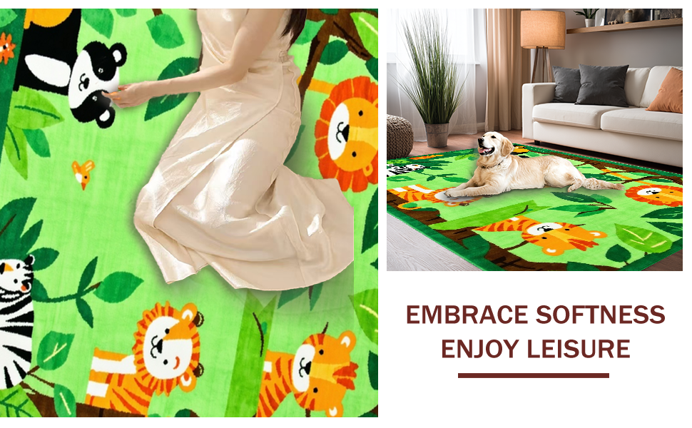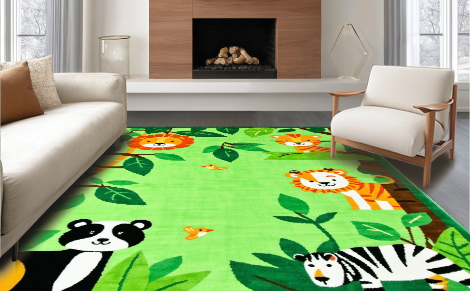 Ultra Soft Area Rug, Non Slip, Stain Resistant, Washable Area Rugs for Living Room, Bedroom, Whimsical Tropical Creature Palette(Green) Overview: