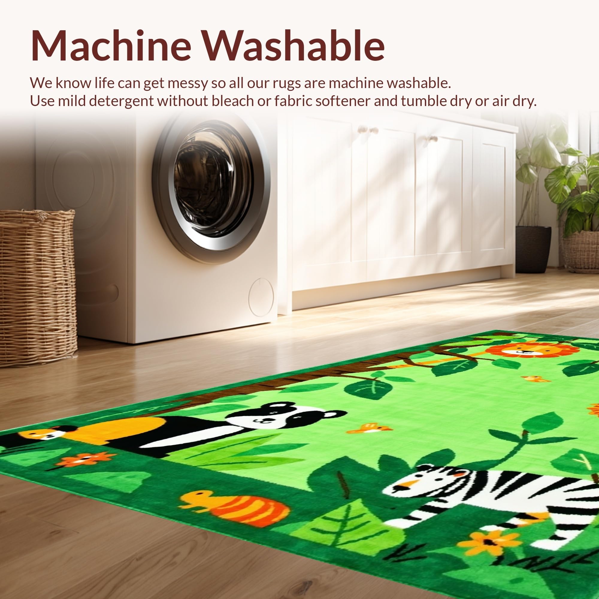 - Machine Washable: Our rugs can be easily thrown in the wash machine.