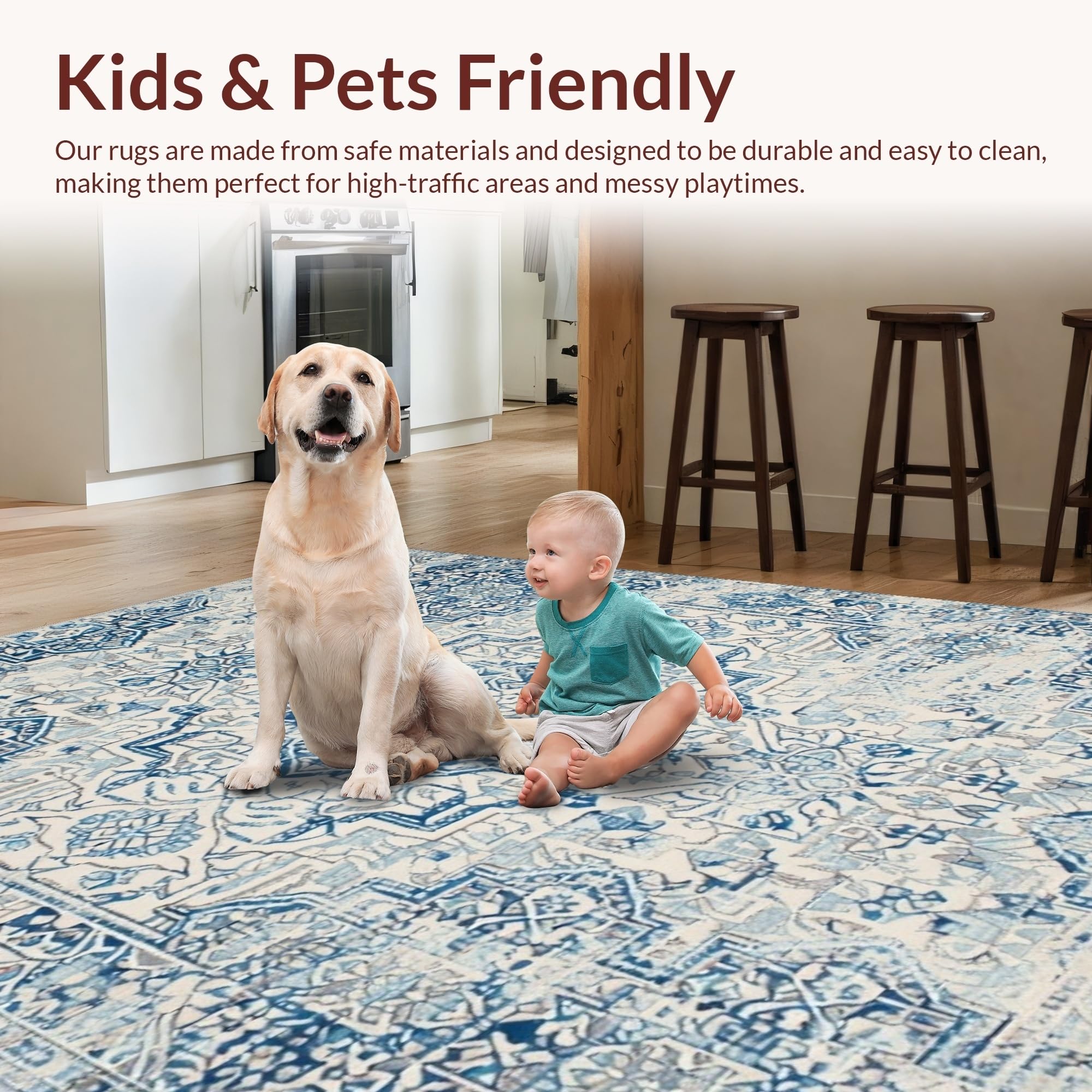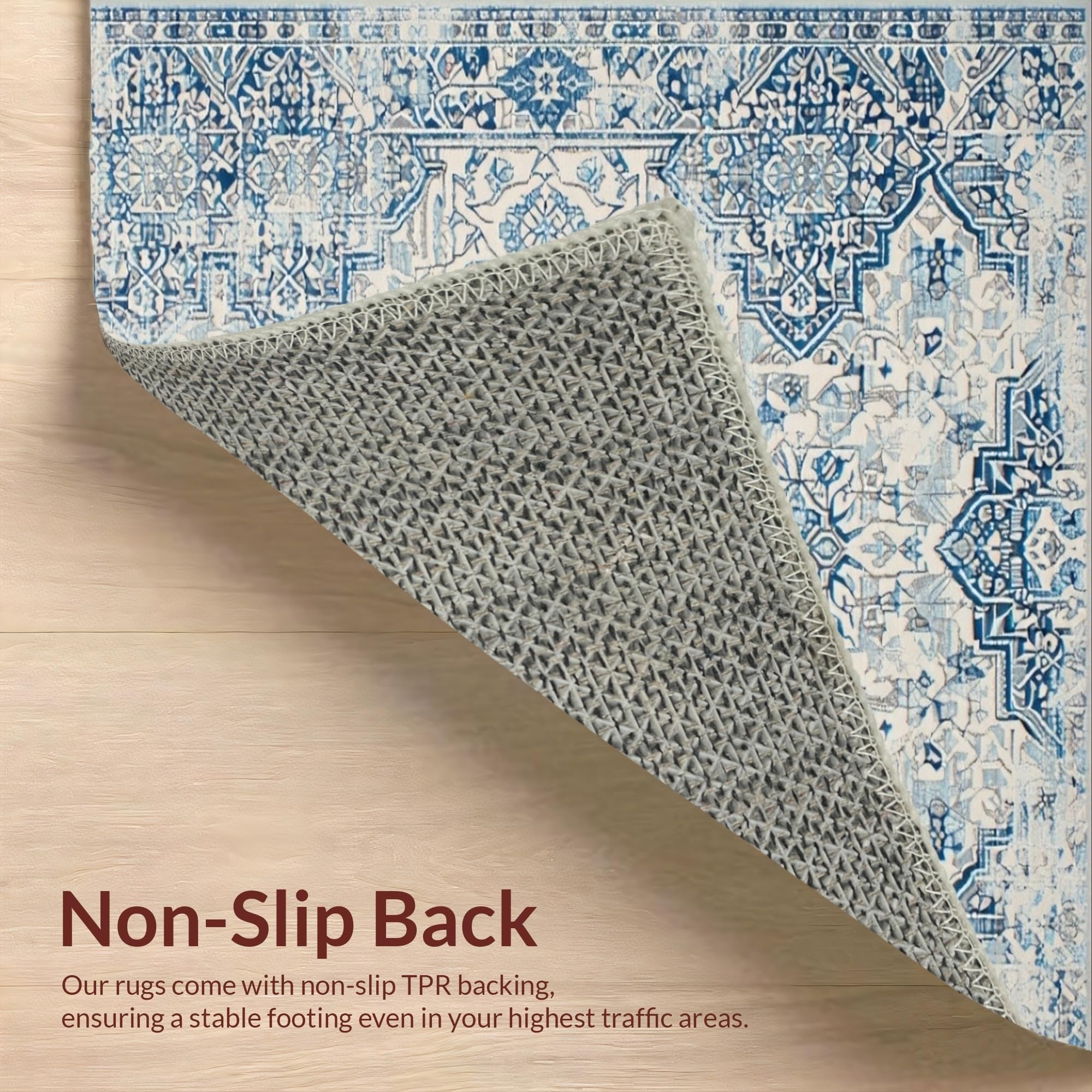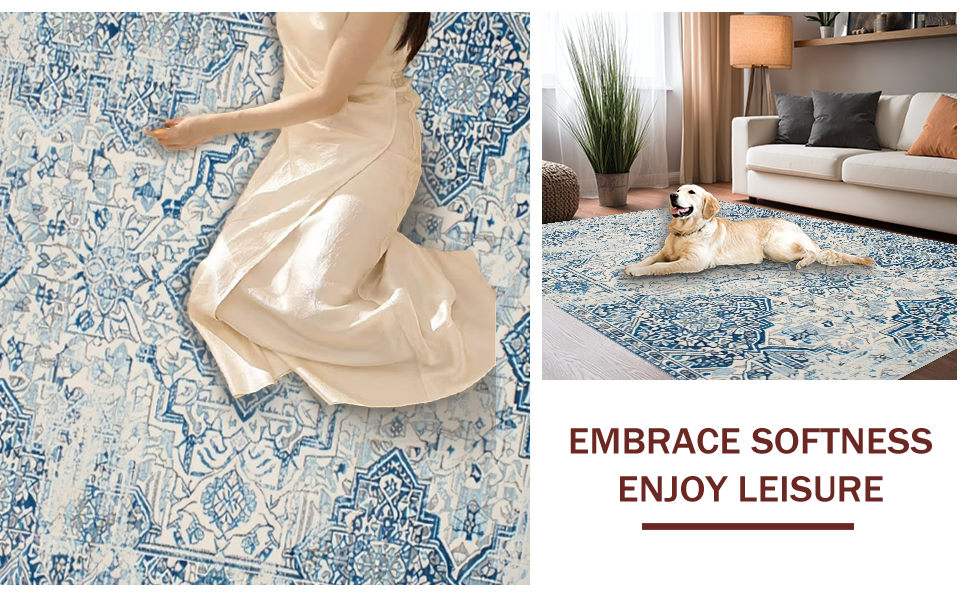 Ultra Soft Area Rug, Non Slip, Stain Resistant, Washable Area Rugs for Living Room, Bedroom, Whimsical Tropical Floral Aesthetic(Blue) Overview: