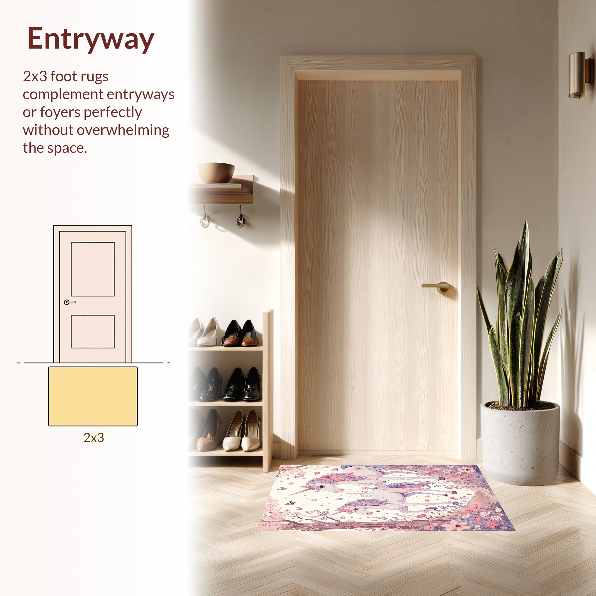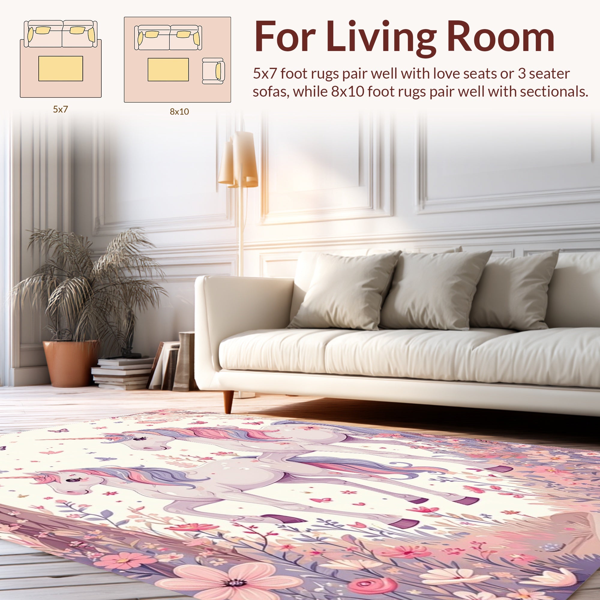 Flatwoven High Traffic Area Rug, Whimsical Unicorn Dreams, Non Slip, Stain Resistant, Washable Area Rugs for Living Room, Bedroom (Pink) Overview:
