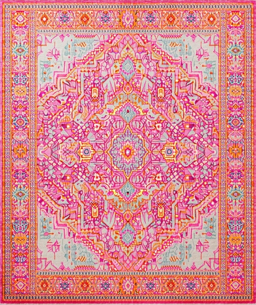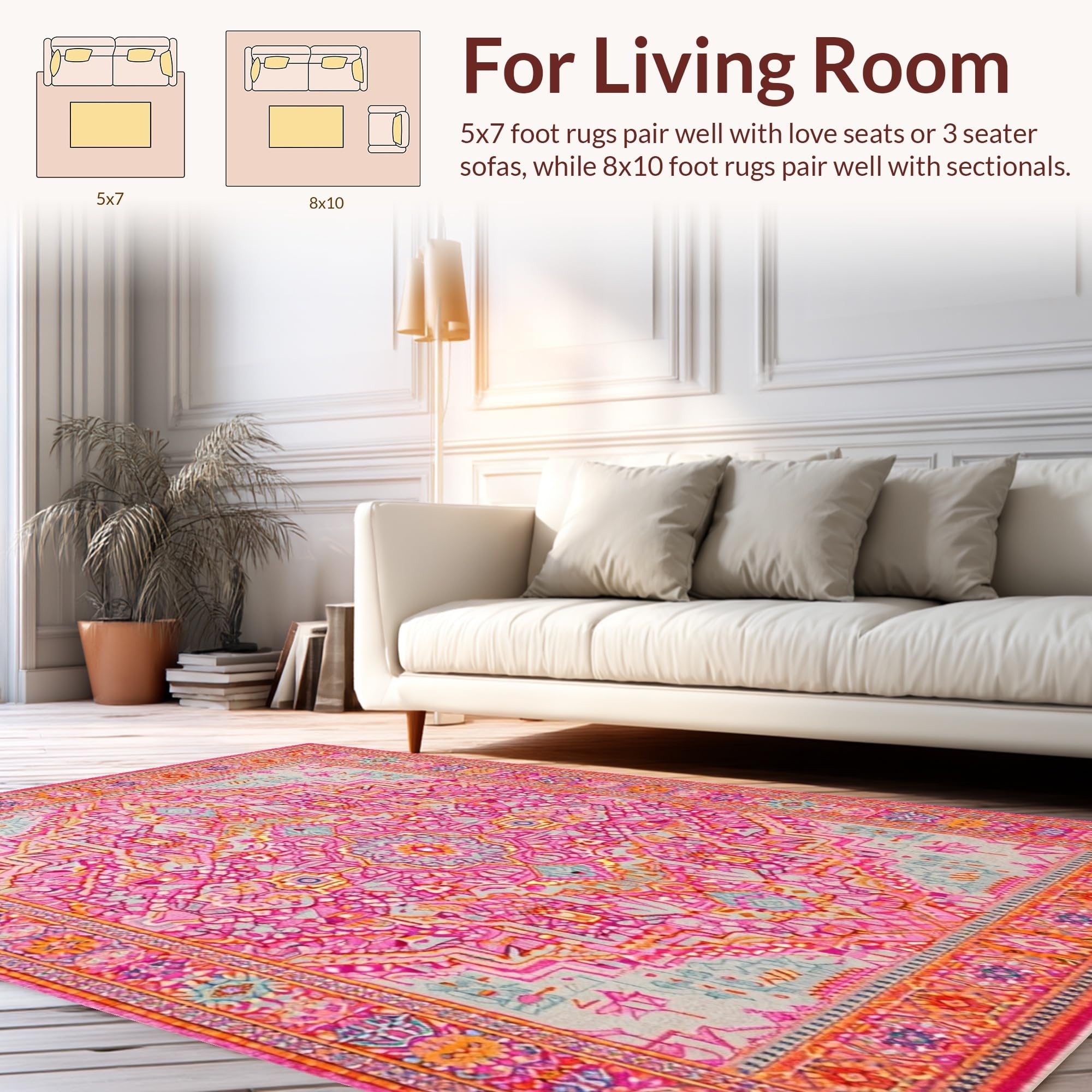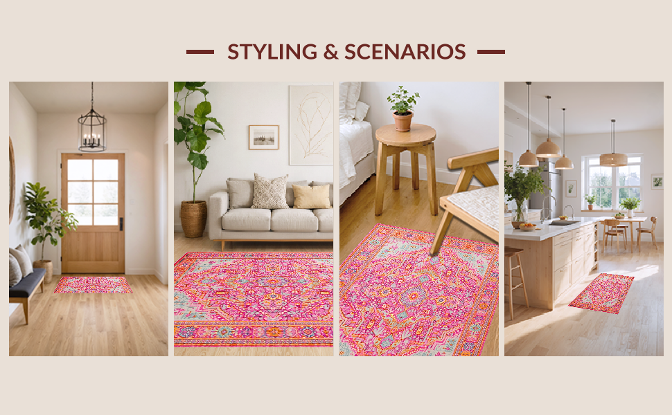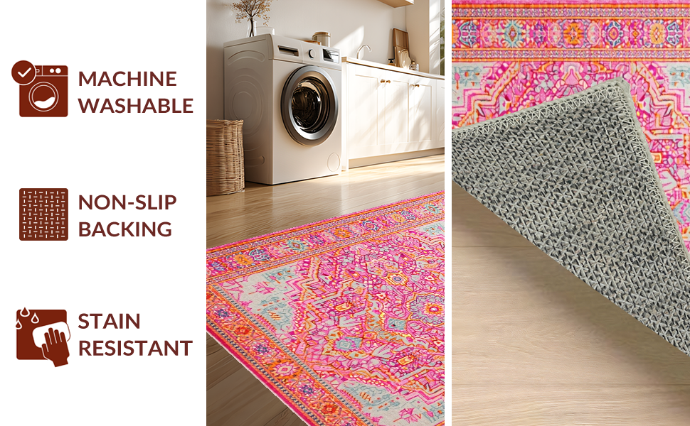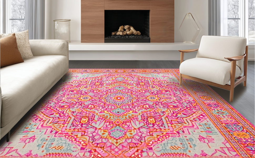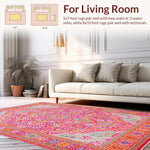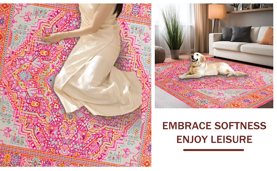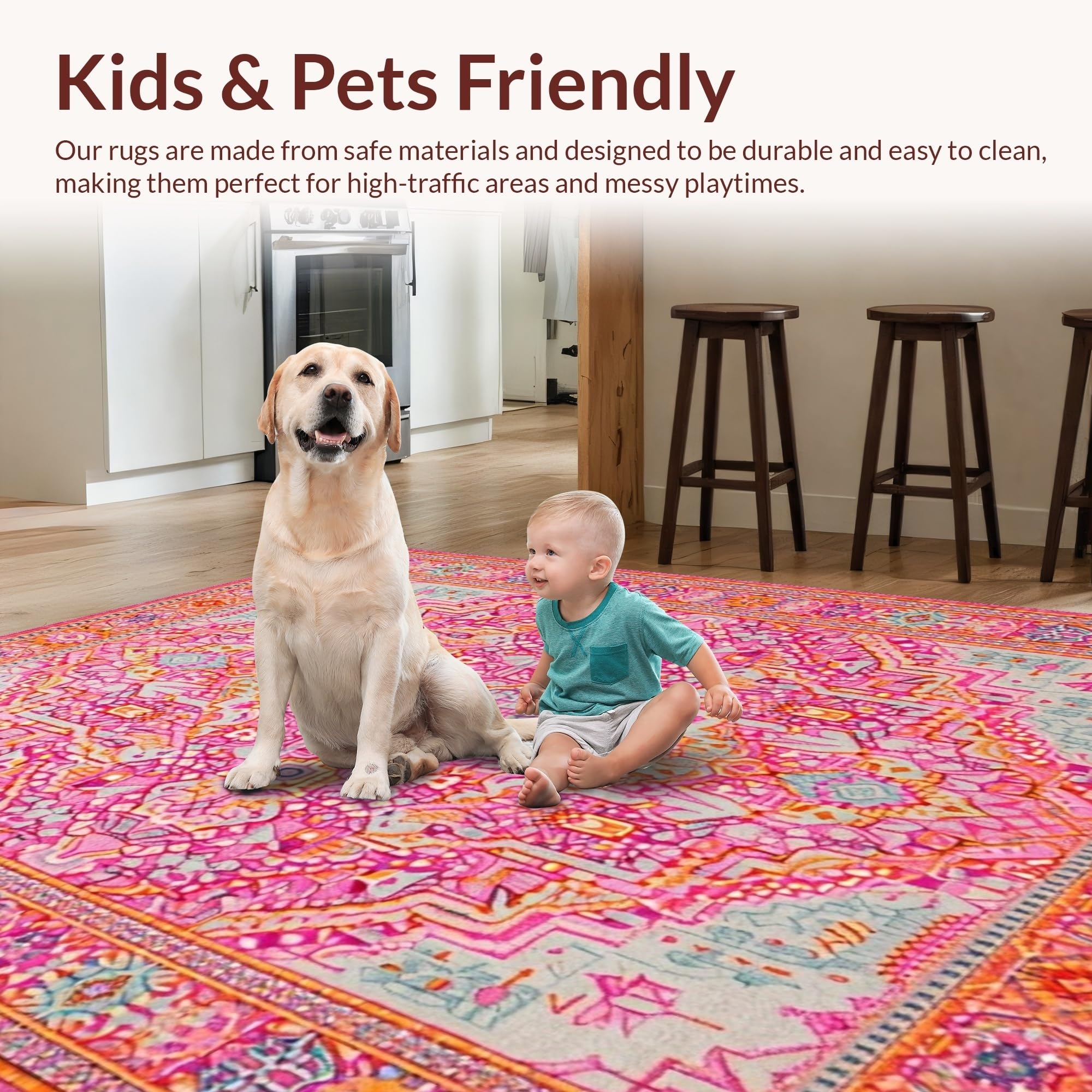 Ultra Soft Area Rug, Non Slip, Stain Resistant, Washable Area Rugs for Living Room, Bedroom, Whimsical Vintage Tiled Patterns(Pink) Overview:
