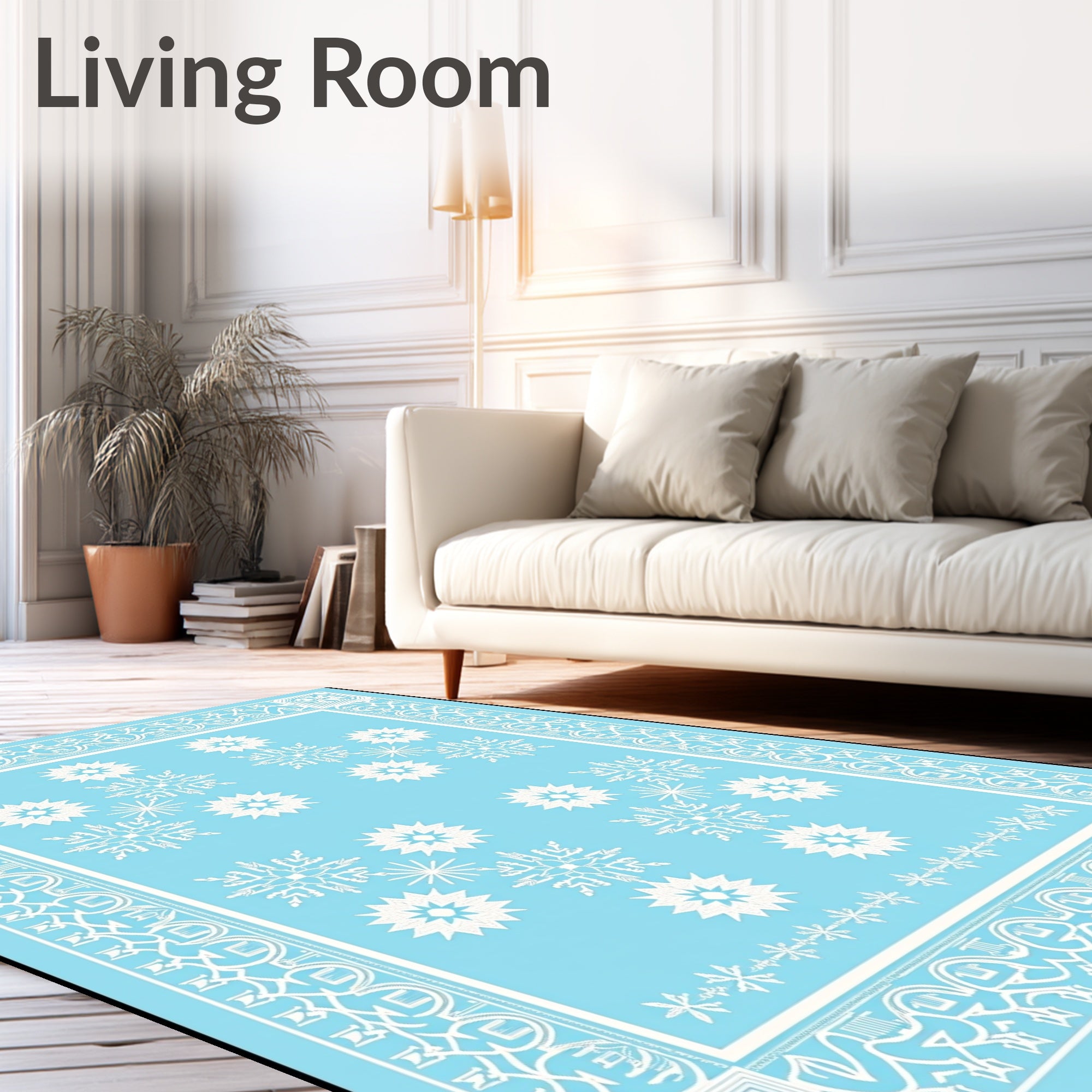 Ultra Soft Area Rug, Non Slip, Stain Resistant, Washable Area Rugs for Living Room, Bedroom, Whimsical Winter Wonderland Medallion with Intricate Arrangements(Blue) Overview: