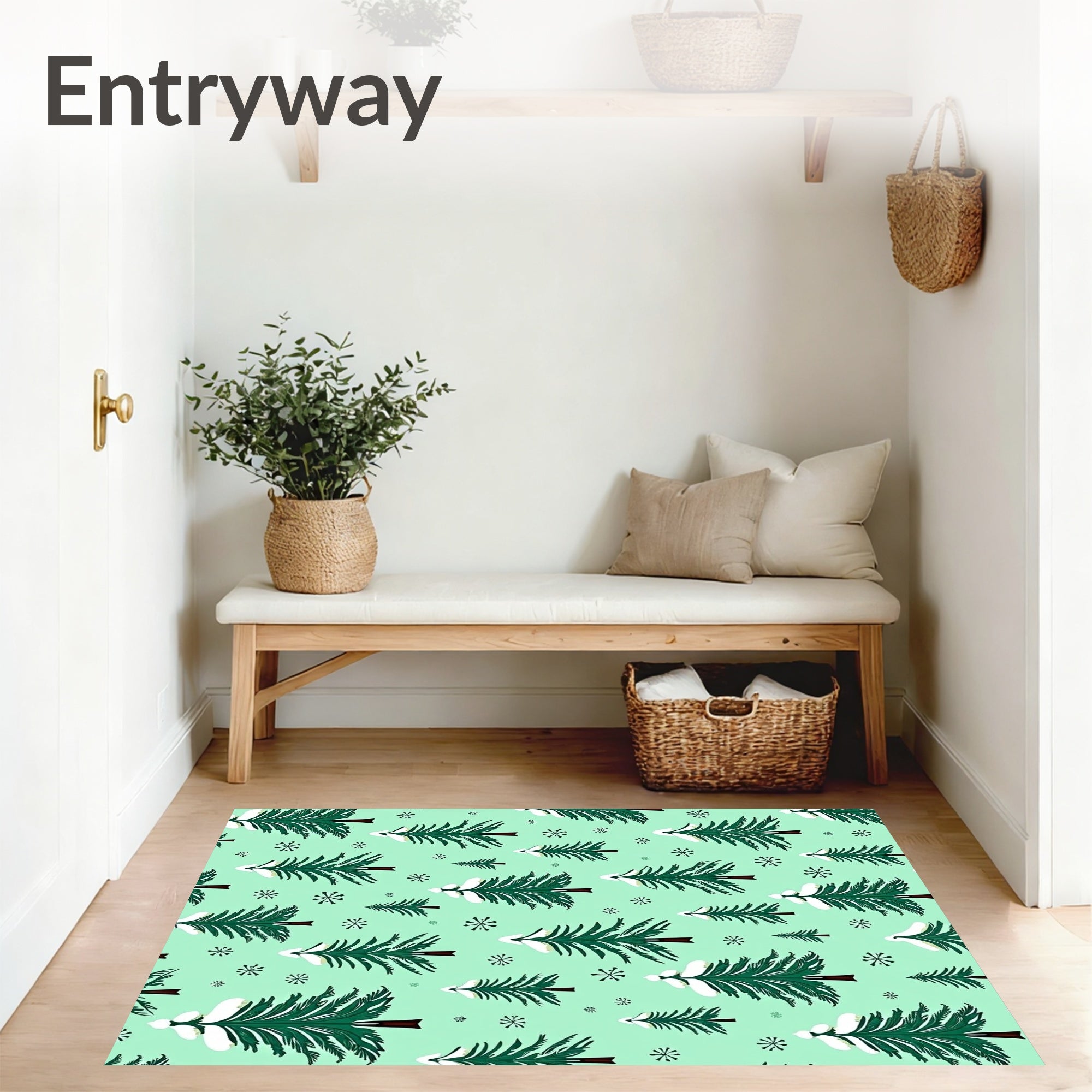 Ultra Soft Area Rug, Non Slip, Stain Resistant, Washable Area Rugs for Living Room, Bedroom, Whimsical Winter Wonderland Snowy Decorative Charm(Green) Overview: