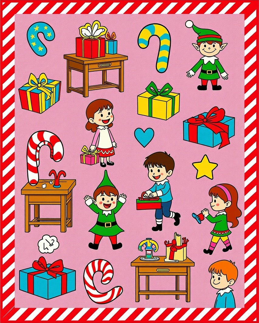 Whimsical Workshop Toy Factory with Cane Stripe Borders(Pink)