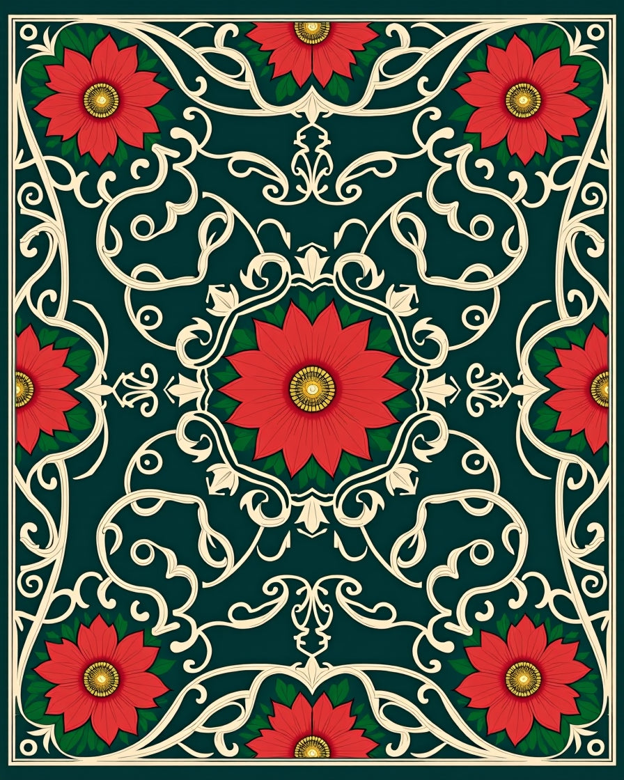 Whimsical Yuletide Scrollwork Poinsettia Filigree Artistic(Red)