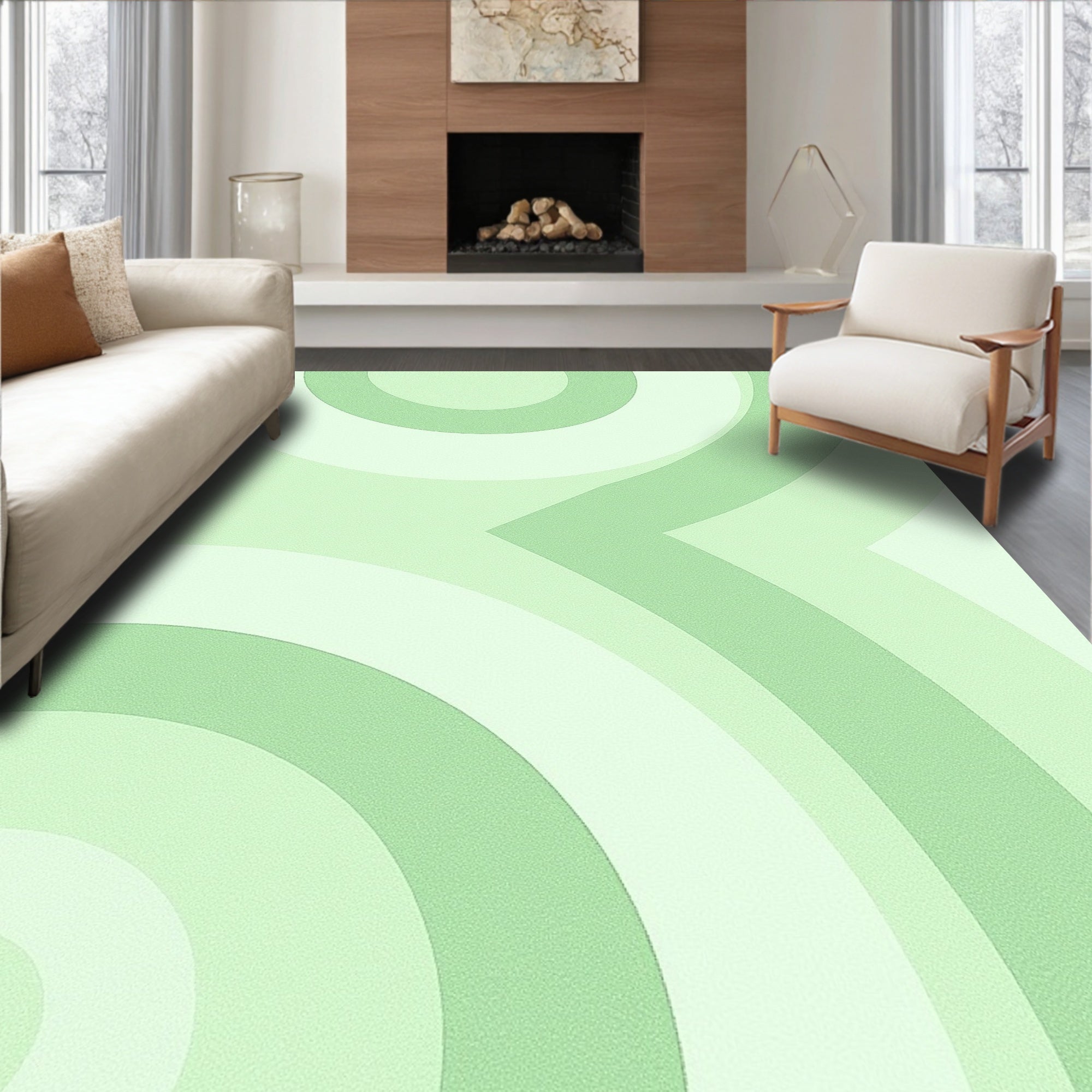 Ultra Soft Area Rug, Non Slip, Stain Resistant, Washable Area Rugs for Living Room, Bedroom, Whispering Vapour Artistic Featuring Airy Drift(Green) Overview: