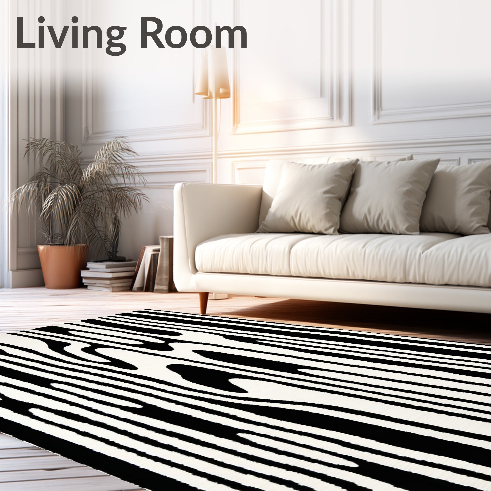 Flatwoven High Traffic Area Rug, Wild Stripe with Expressive Black Graphic Lines Art, Non Slip, Stain Resistant, Washable Area Rugs for Living Room, Bedroom (Black) Overview: