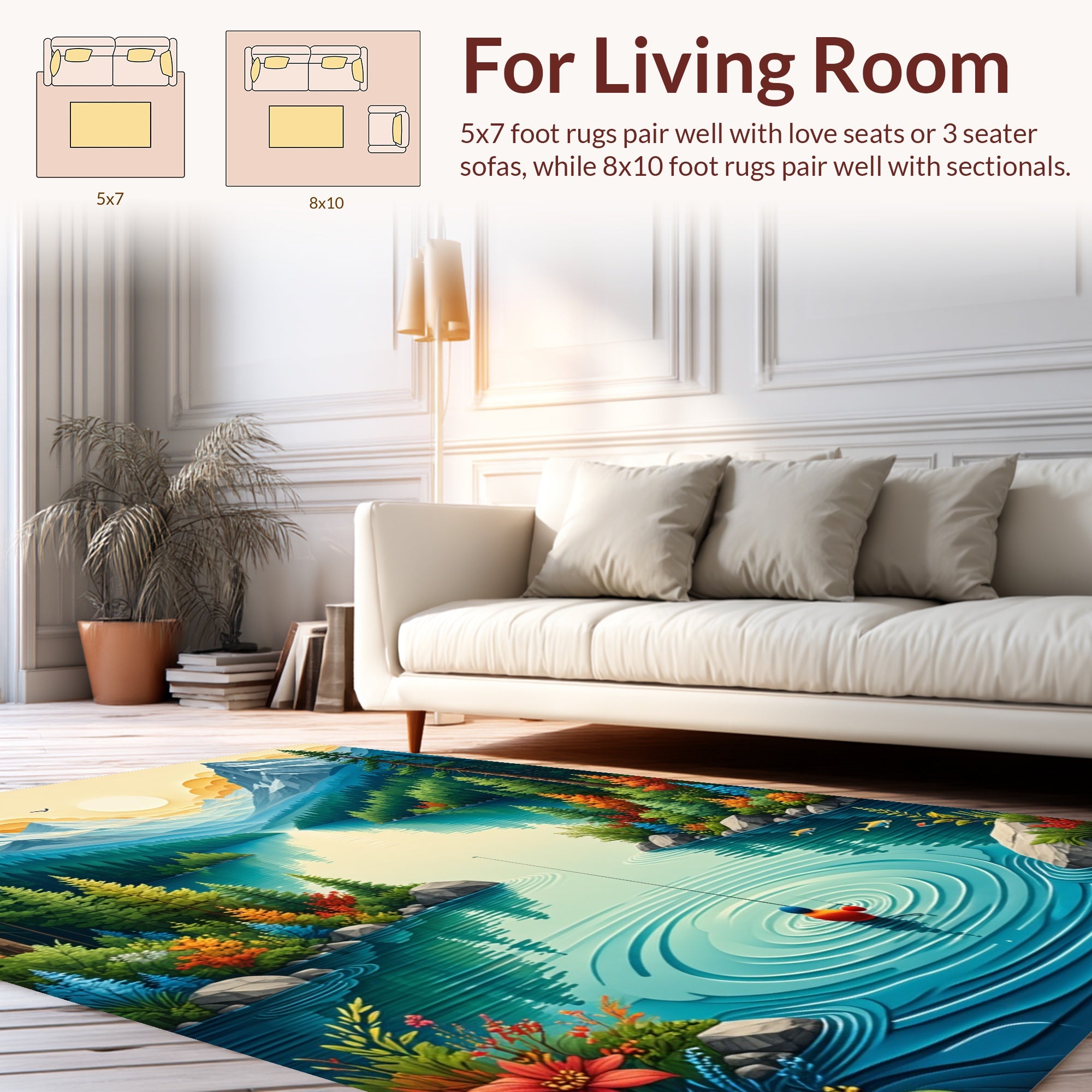 Flatwoven High Traffic Area Rug, Wildlife Bass Fishing, Non Slip, Stain Resistant, Washable Area Rugs for Living Room, Bedroom (Blue) Overview: