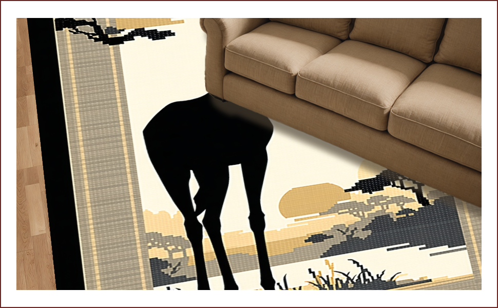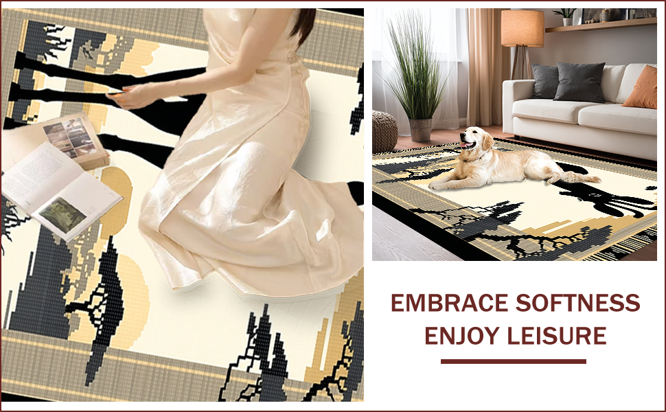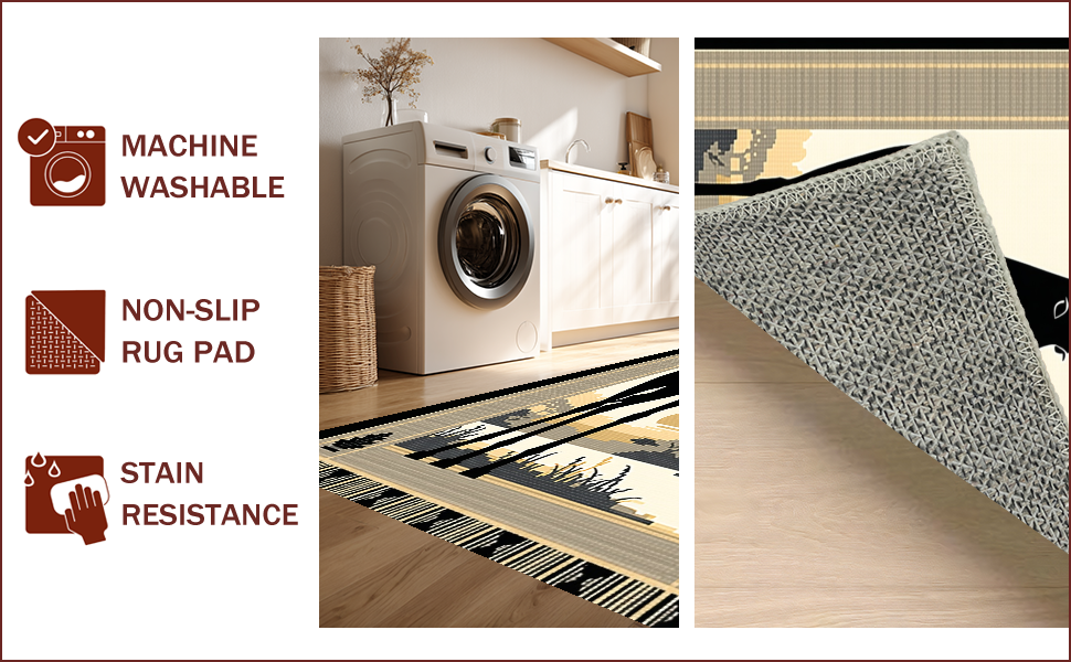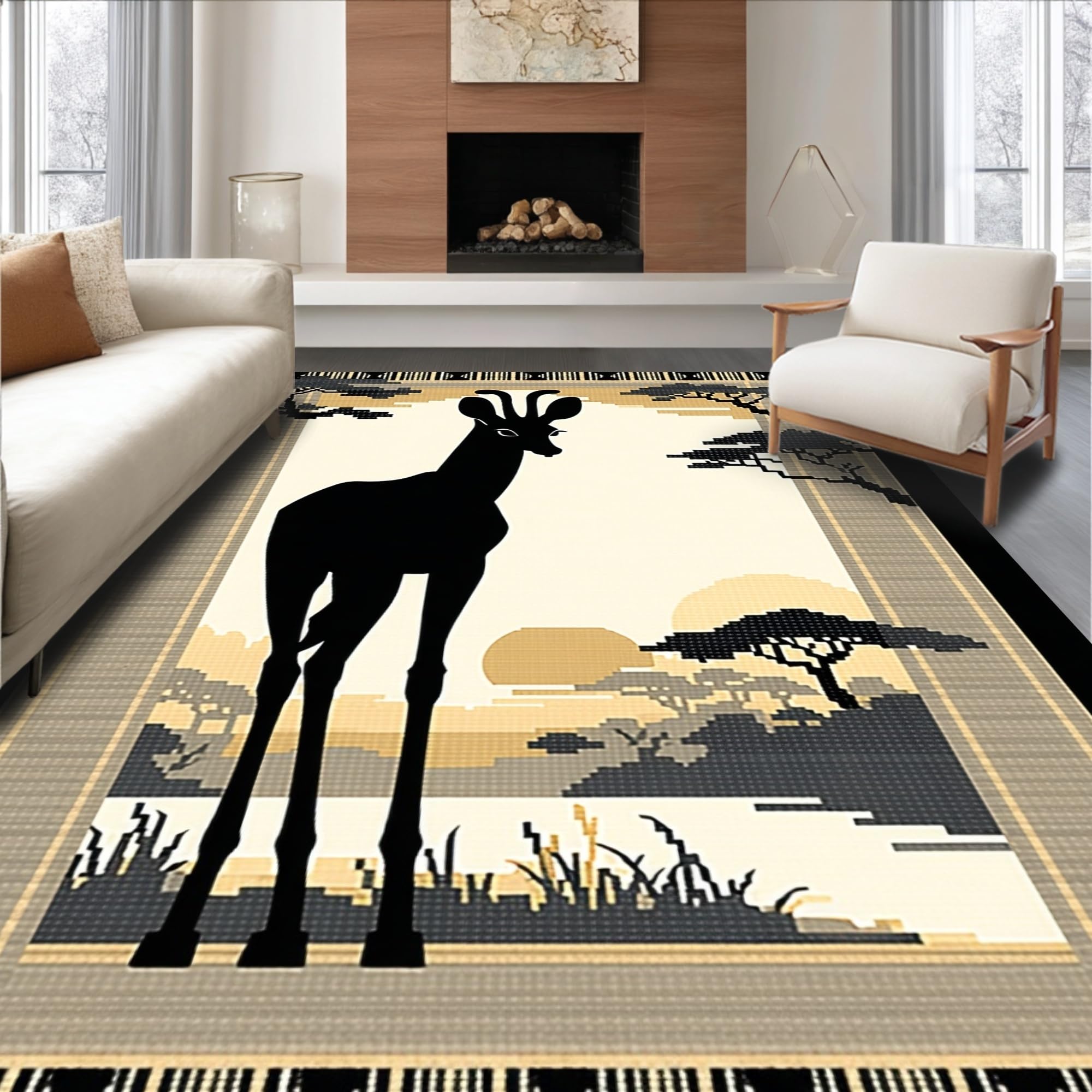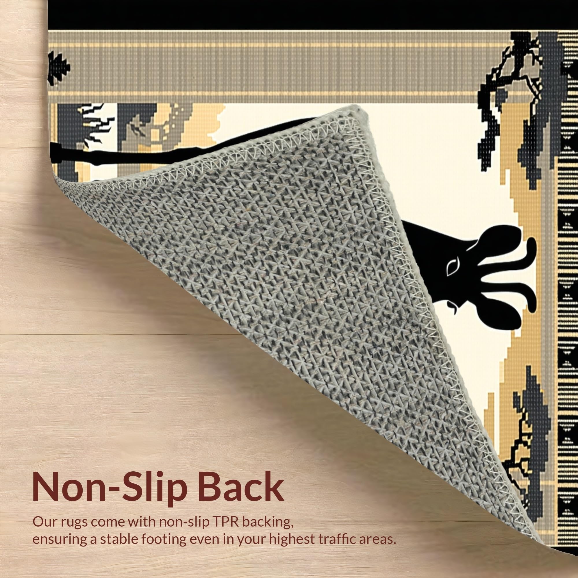 Ultra Soft Area Rug, Non Slip, Stain Resistant, Washable Area Rugs for Living Room, Bedroom, Wildlife-Inspired Ethnic Striped Aesthetic(Black) Overview: