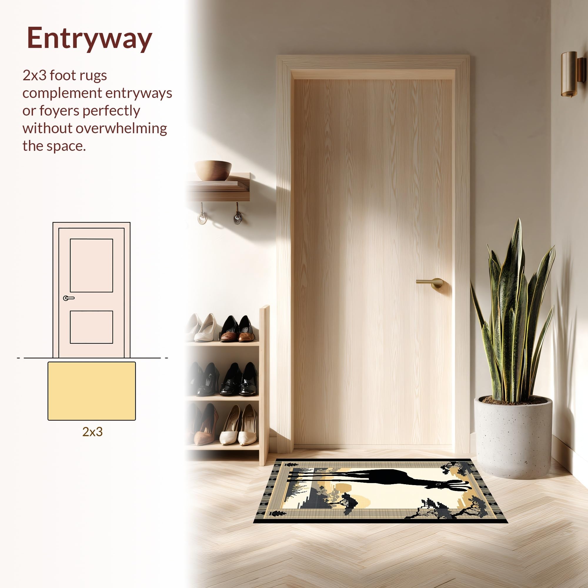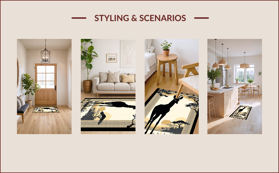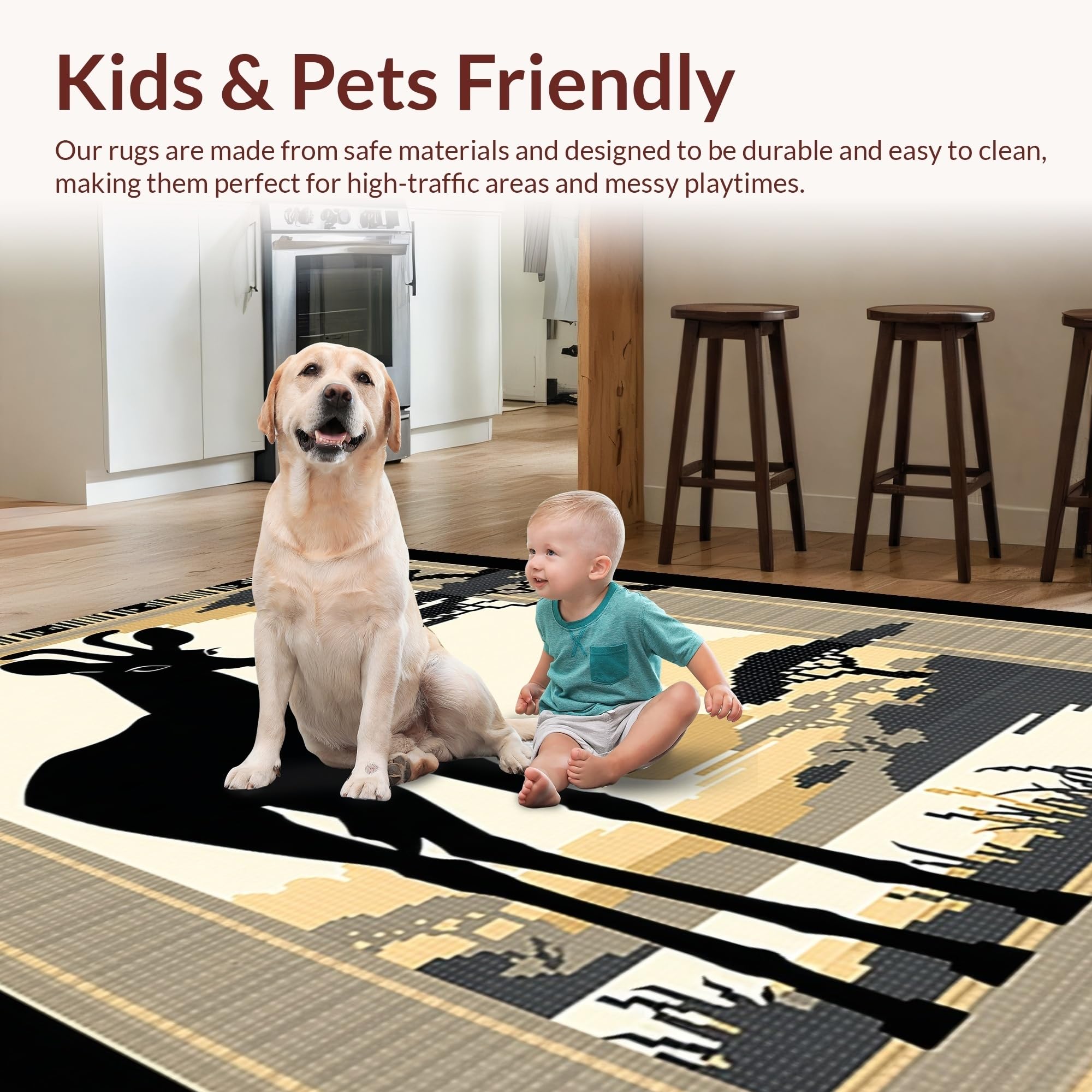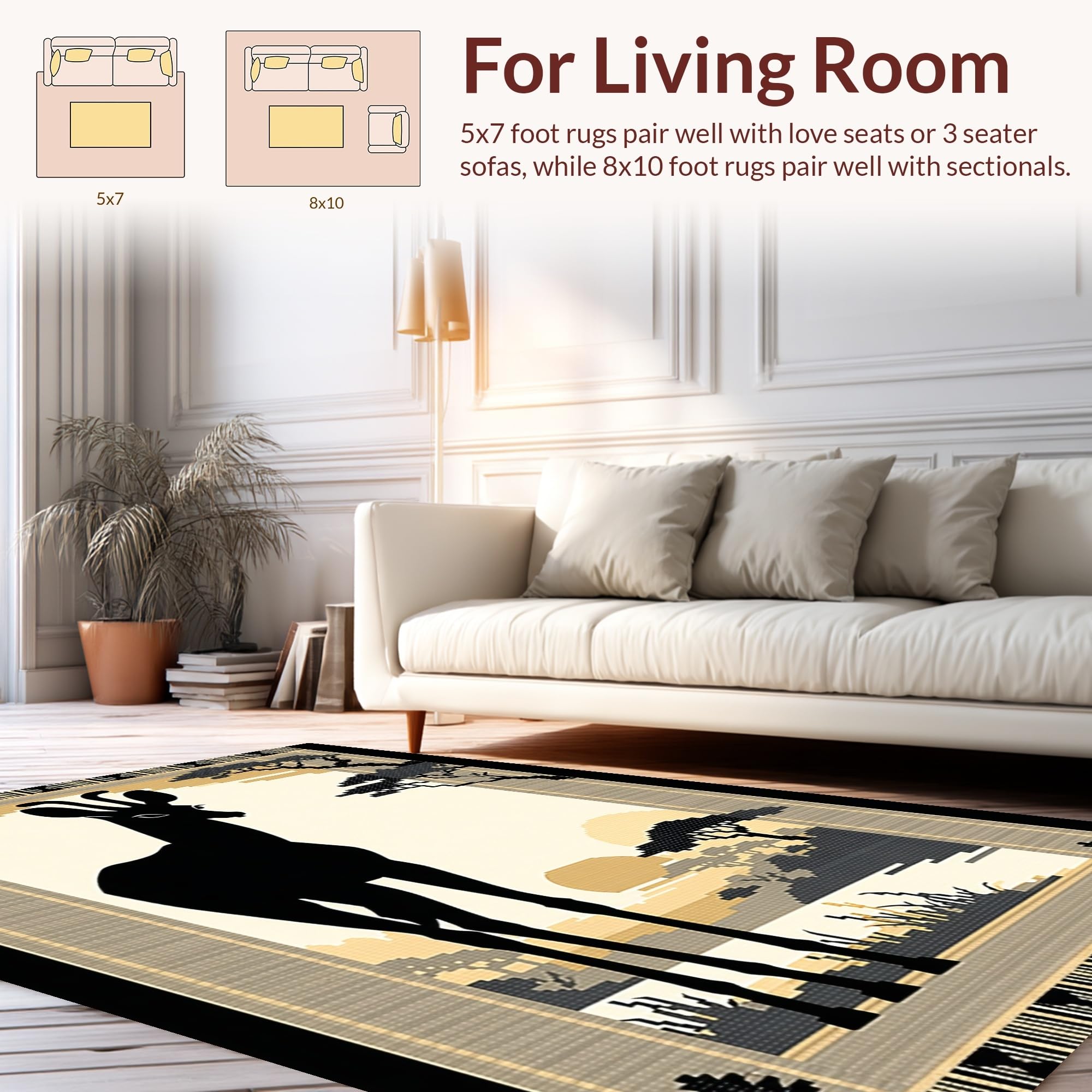 Ultra Soft Area Rug, Non Slip, Stain Resistant, Washable Area Rugs for Living Room, Bedroom, Wildlife-Inspired Ethnic Striped Aesthetic(Black) Overview: