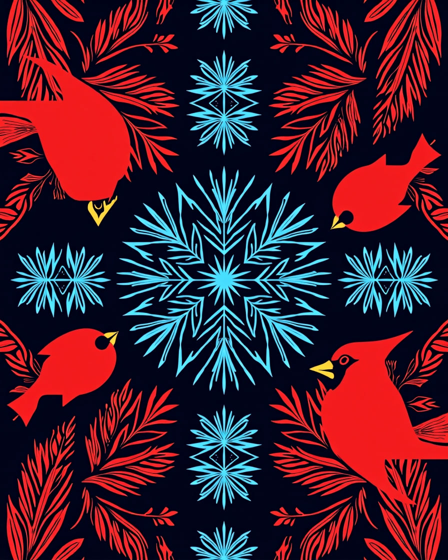 Winter Cardinal Design with Pine Branch Accents(Red)