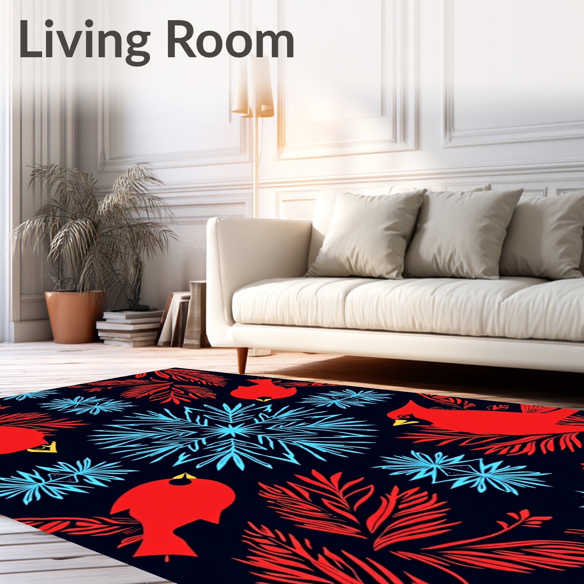 Ultra Soft Area Rug, Non Slip, Stain Resistant, Washable Area Rugs for Living Room, Bedroom, Winter Cardinal Design with Pine Branch Accents(Red) Overview: