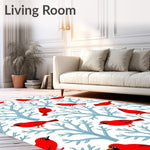 Ultra Soft Area Rug, Non Slip, Stain Resistant, Washable Area Rugs for Living Room, Bedroom, Winter Cardinal Perch Among Frosted Branches Display(Red) Overview: