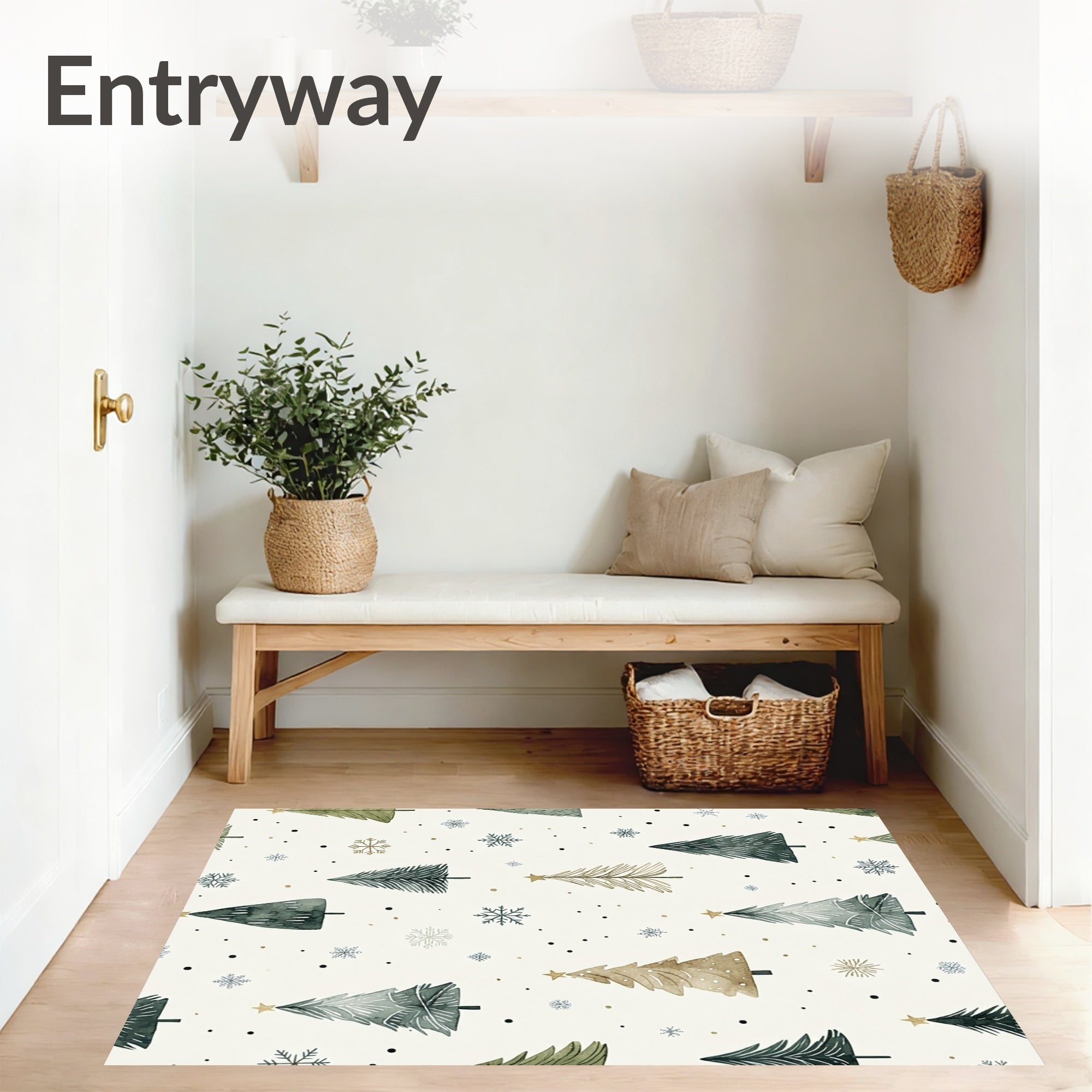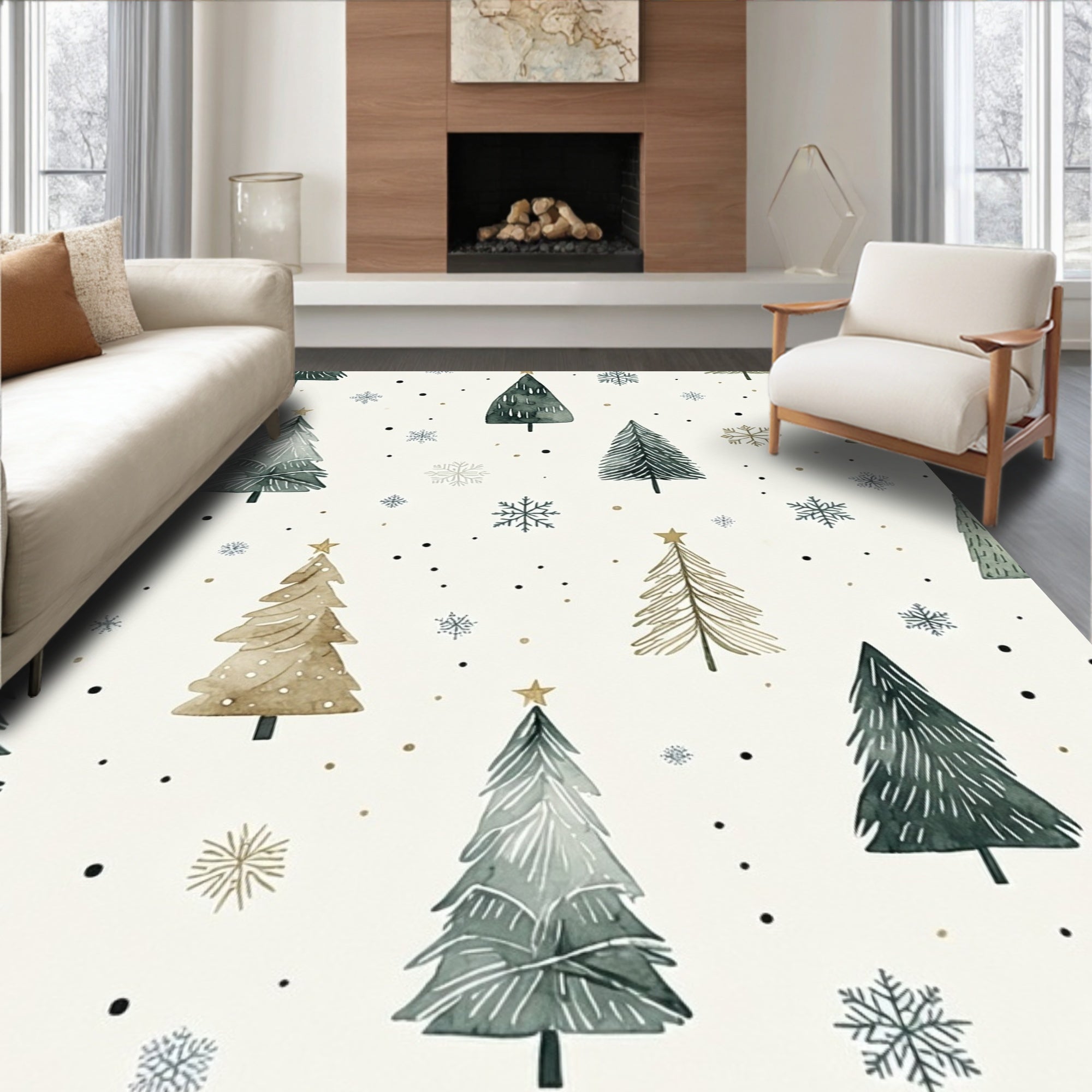 Flatwoven High Traffic Area Rug, Winter Eve Christmas Tree Farmhouse Holiday Beige, Non Slip, Stain Resistant, Washable Area Rugs for Living Room, Bedroom (Ivory) Overview:
