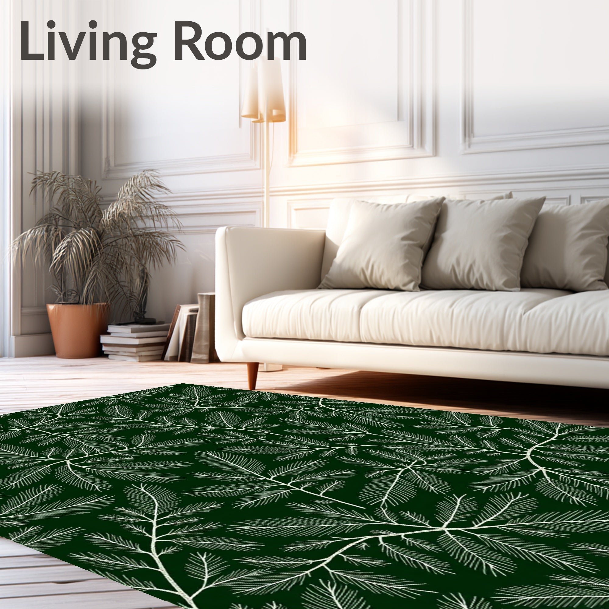 Ultra Soft Area Rug, Non Slip, Stain Resistant, Washable Area Rugs for Living Room, Bedroom, Winter Pine Branch Design with Crystal Details(Green) Overview: