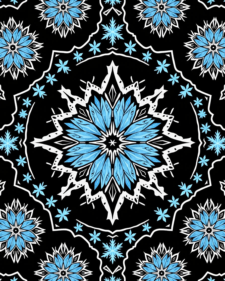 Winter Snowflake Medallion Design with Crystalline Details(Black)