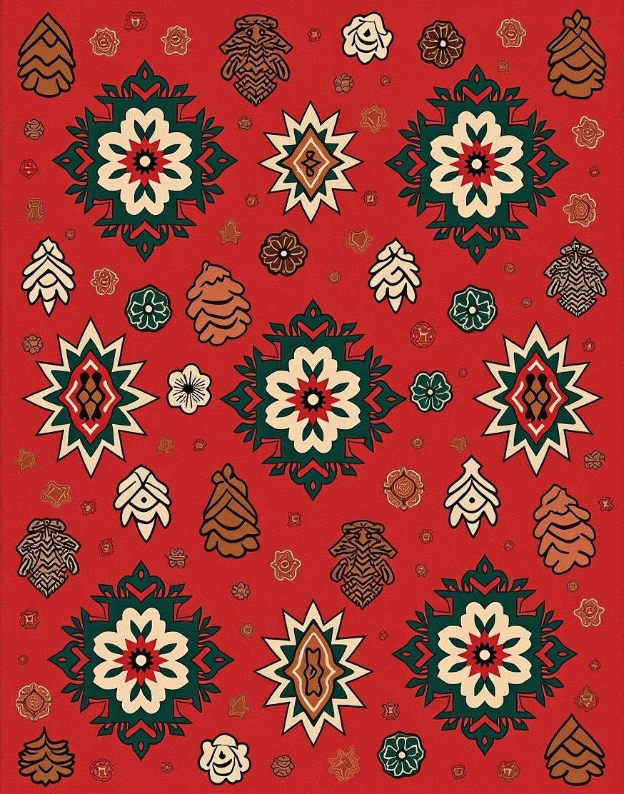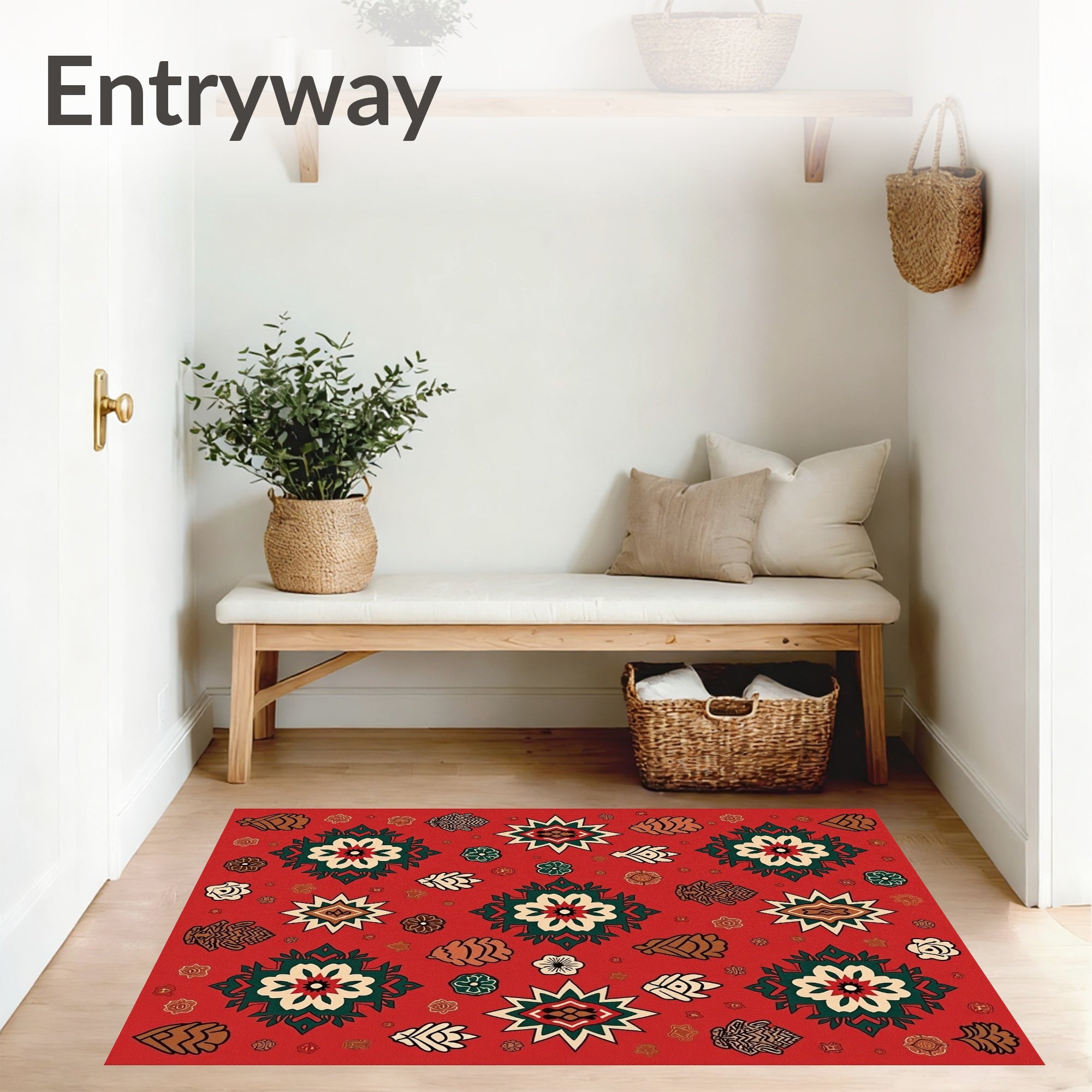 Ultra Soft Area Rug, Non Slip, Stain Resistant, Washable Area Rugs for Living Room, Bedroom, Winter Solstice Pinecone Medallion Decorative(Red) Overview:
