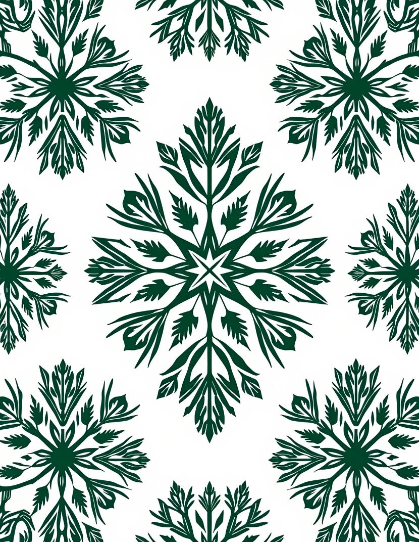 Winter Solstice Starburst with Interlocking Snowflake Motifs(Green)