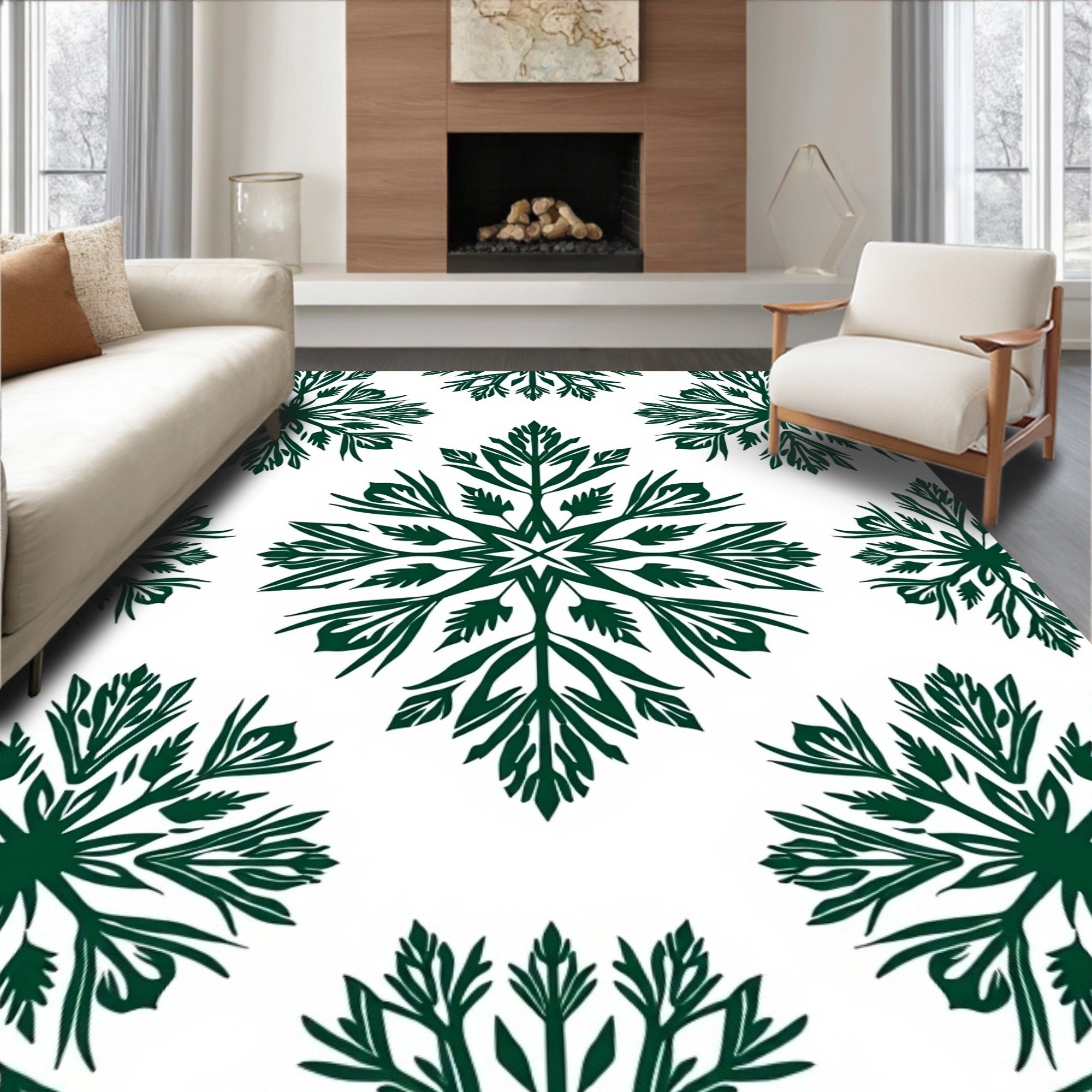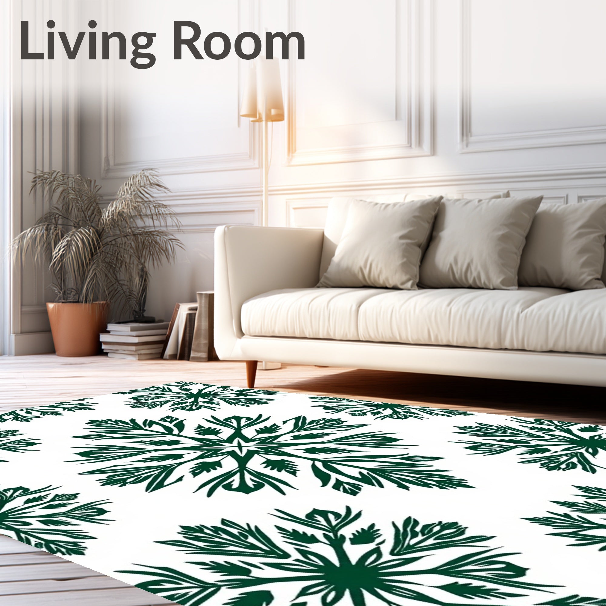 Ultra Soft Area Rug, Non Slip, Stain Resistant, Washable Area Rugs for Living Room, Bedroom, Winter Solstice Starburst with Interlocking Snowflake Motifs(Green) Overview:
