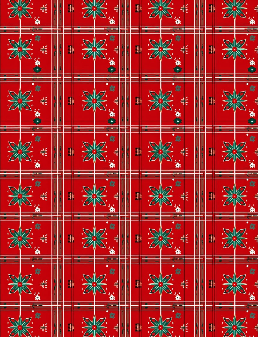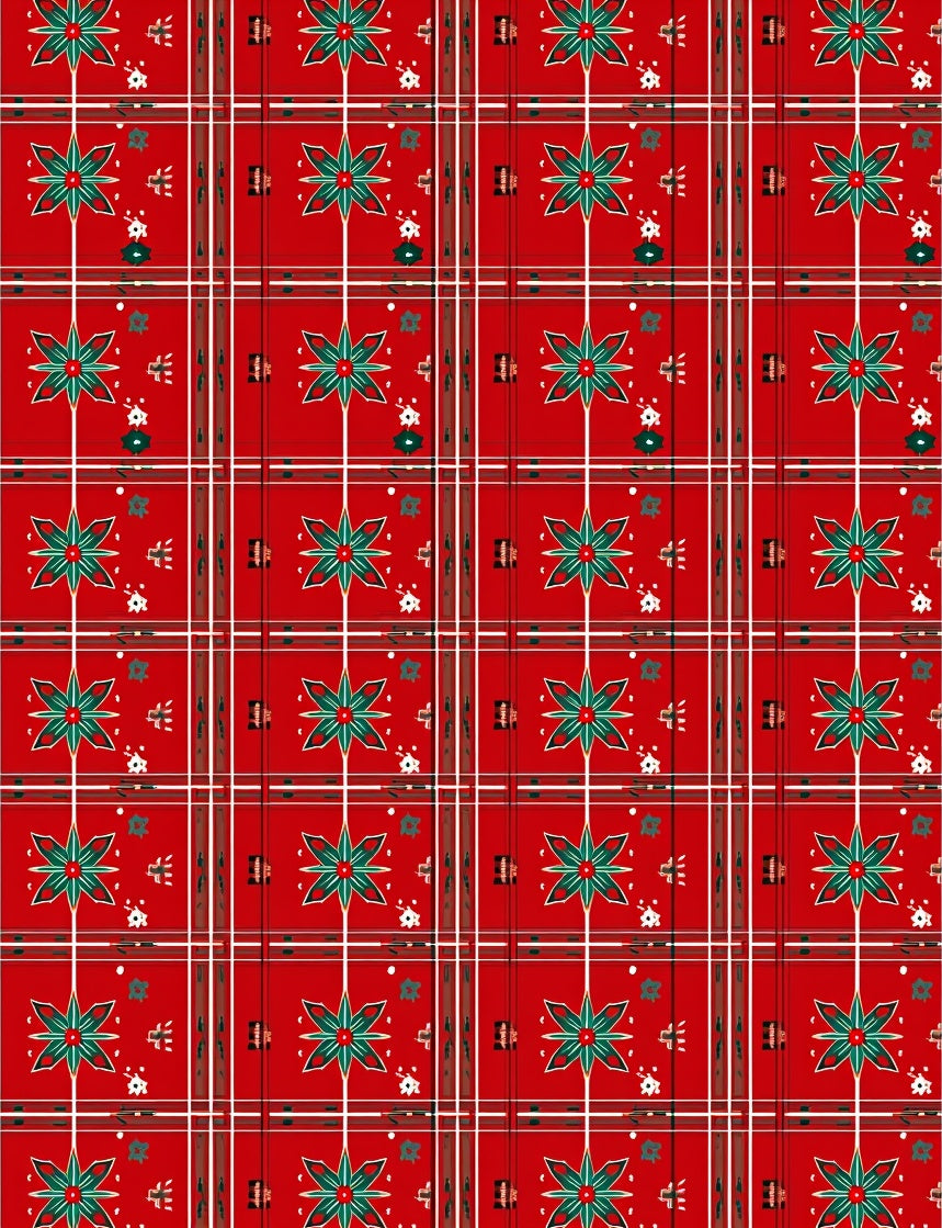 Winter Starburst Interlocking Plaid with Festive Botanical Flourish(Red)