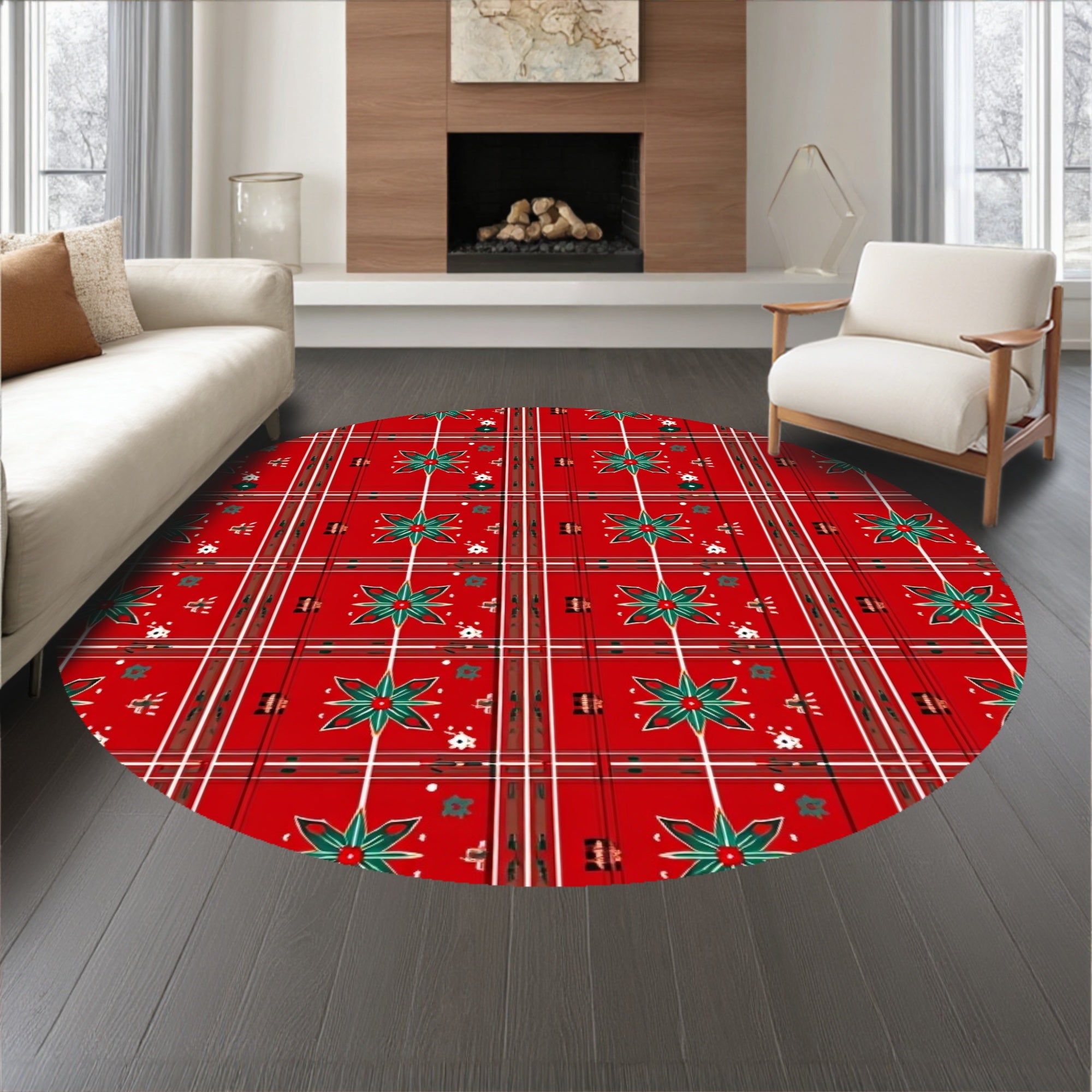 Ultra Soft Area Rug, Non Slip, Stain Resistant, Washable Area Rugs for Living Room, Bedroom, Winter Starburst Interlocking Plaid with Festive Botanical Flourish(Red) Overview: