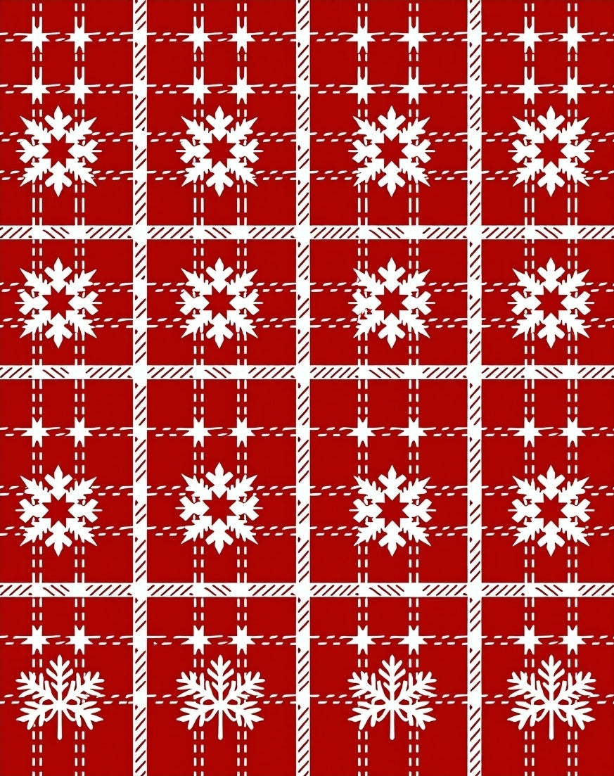 Winter Tartan Plaid Check with Festive Nordic Motifs(Red)