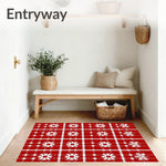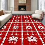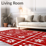 Ultra Soft Area Rug, Non Slip, Stain Resistant, Washable Area Rugs for Living Room, Bedroom, Winter Tartan Plaid Check with Festive Nordic Motifs(Red) Overview: