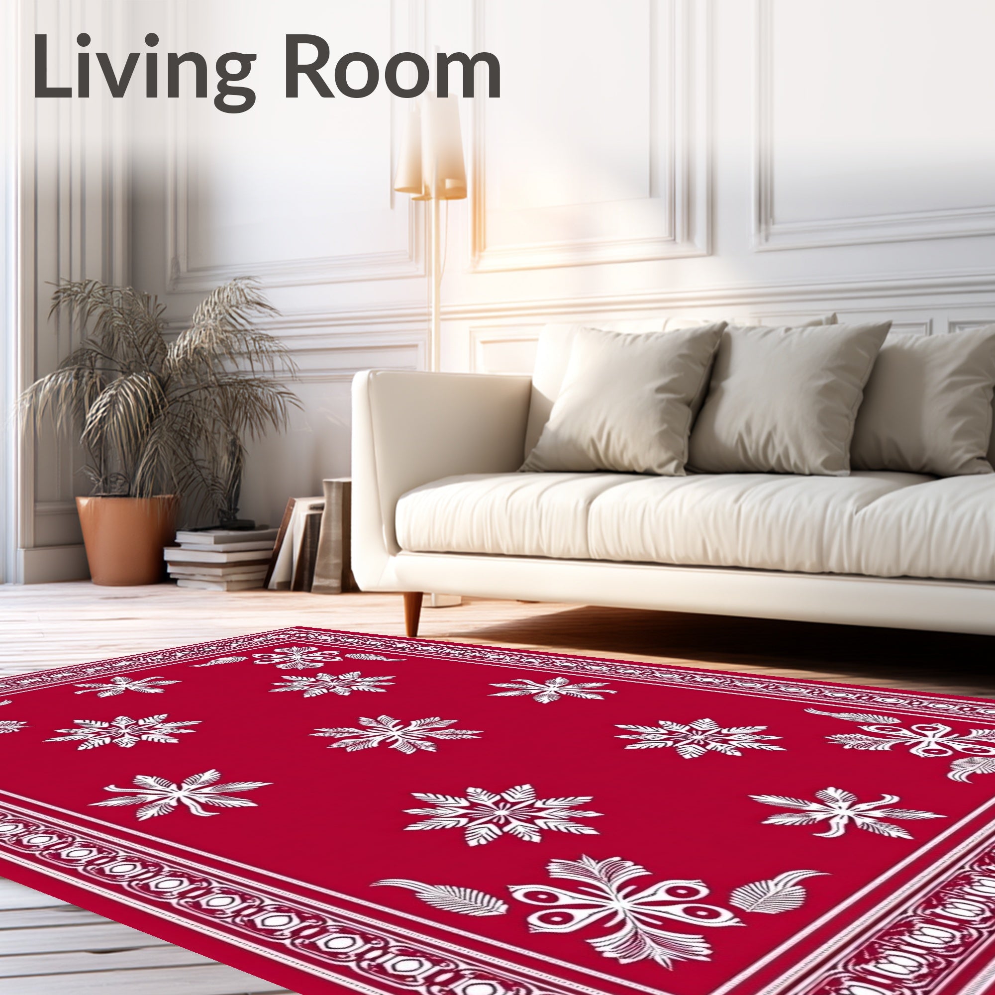Ultra Soft Area Rug, Non Slip, Stain Resistant, Washable Area Rugs for Living Room, Bedroom, Winter Wonderland Decorative Floor Covering(Red) Overview: