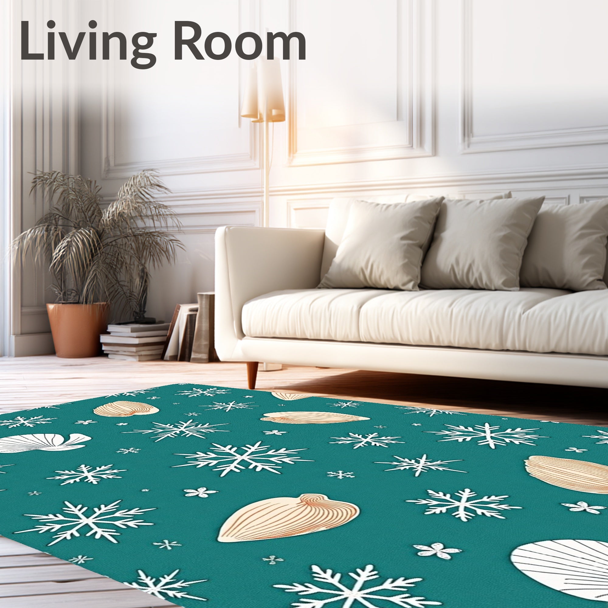 Ultra Soft Area Rug, Non Slip, Stain Resistant, Washable Area Rugs for Living Room, Bedroom, Winter Wonderland Enchanted Symphony(Teal) Overview: