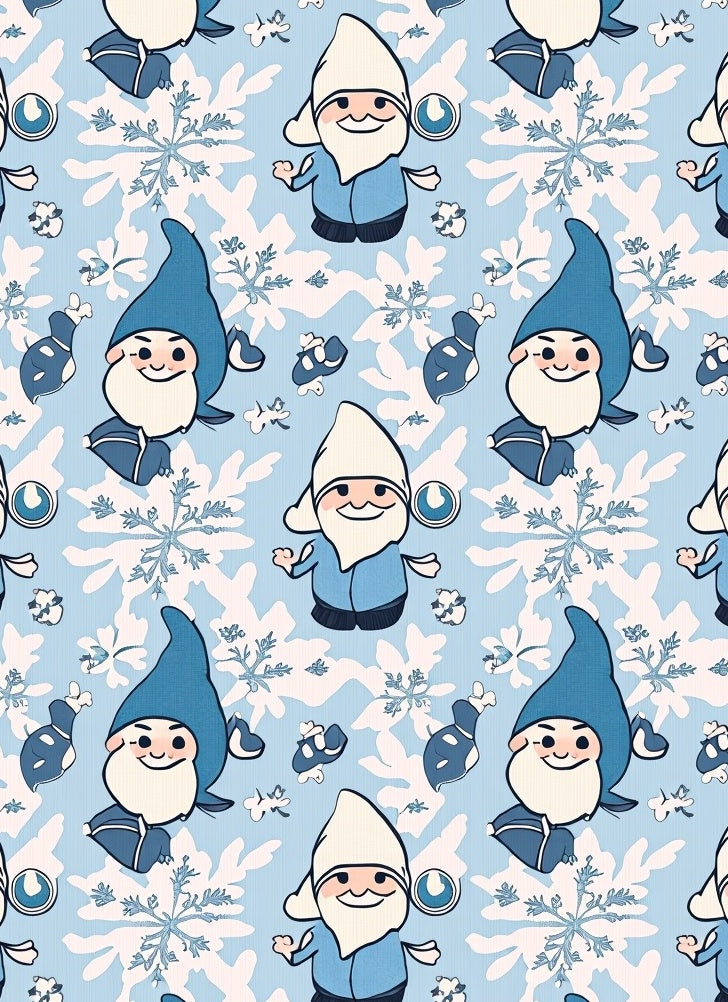 Winter Wonderland Gnome Motif Seasonal Snowfall Theme(Blue)