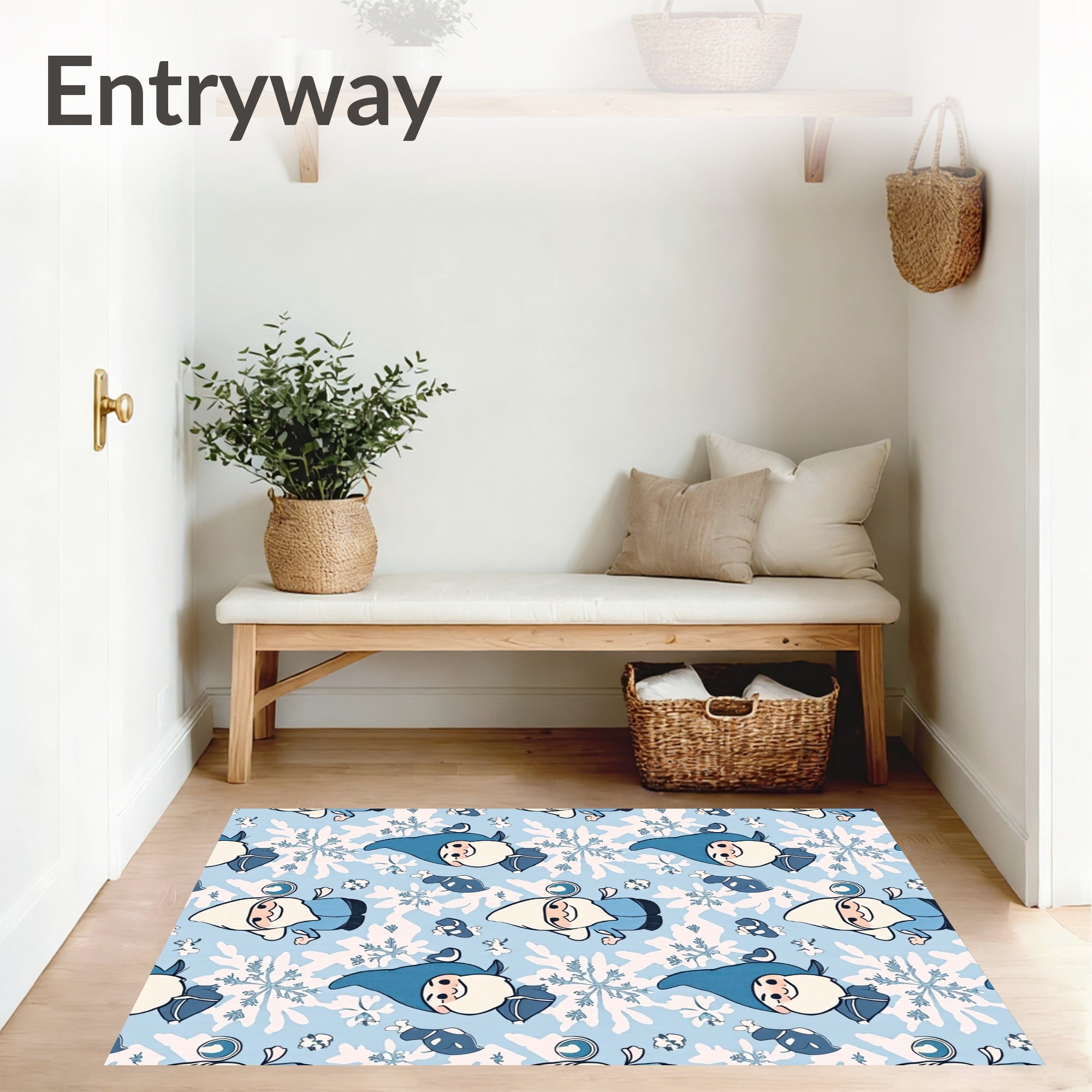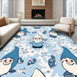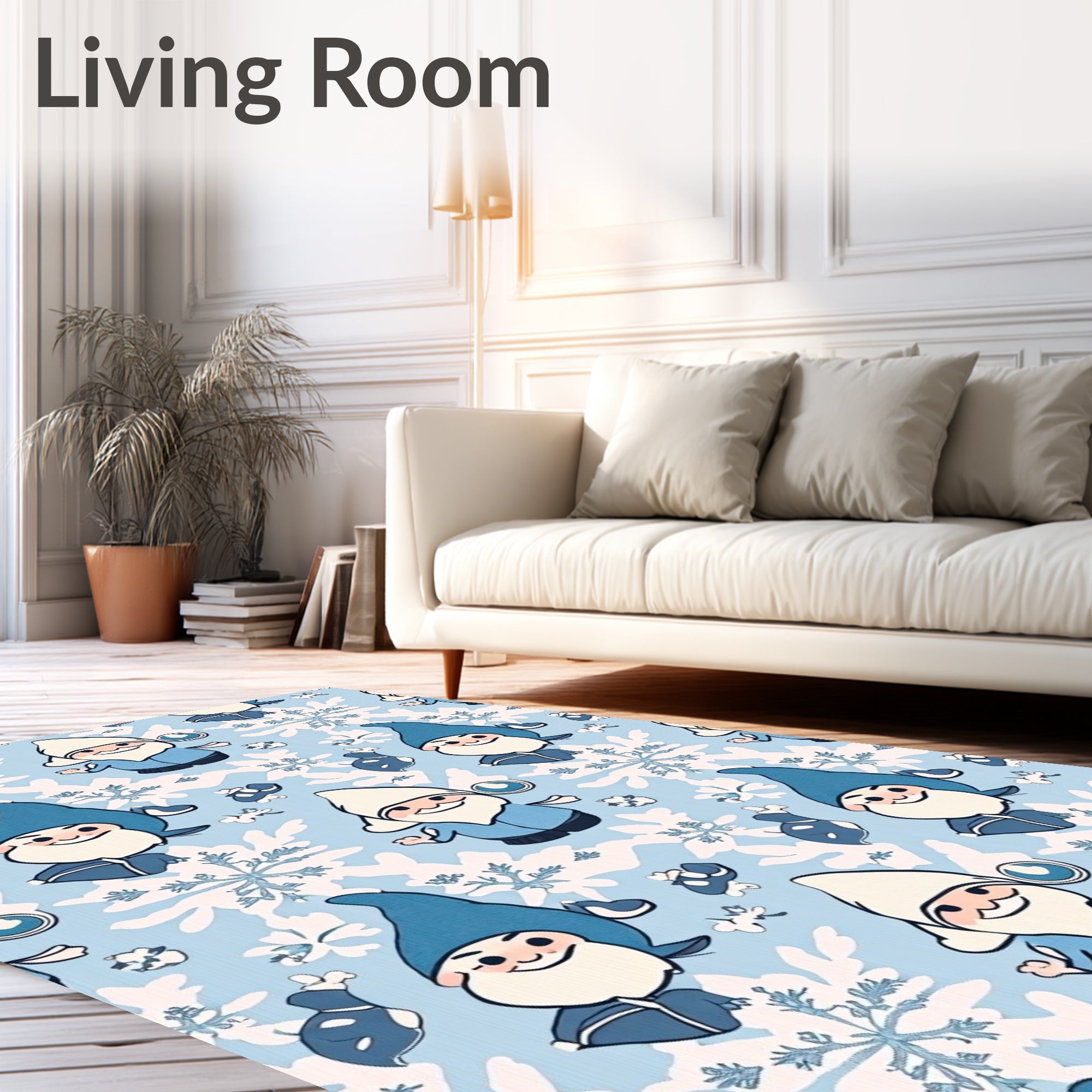 Ultra Soft Area Rug, Non Slip, Stain Resistant, Washable Area Rugs for Living Room, Bedroom, Winter Wonderland Gnome Motif Seasonal Snowfall Theme(Blue) Overview: