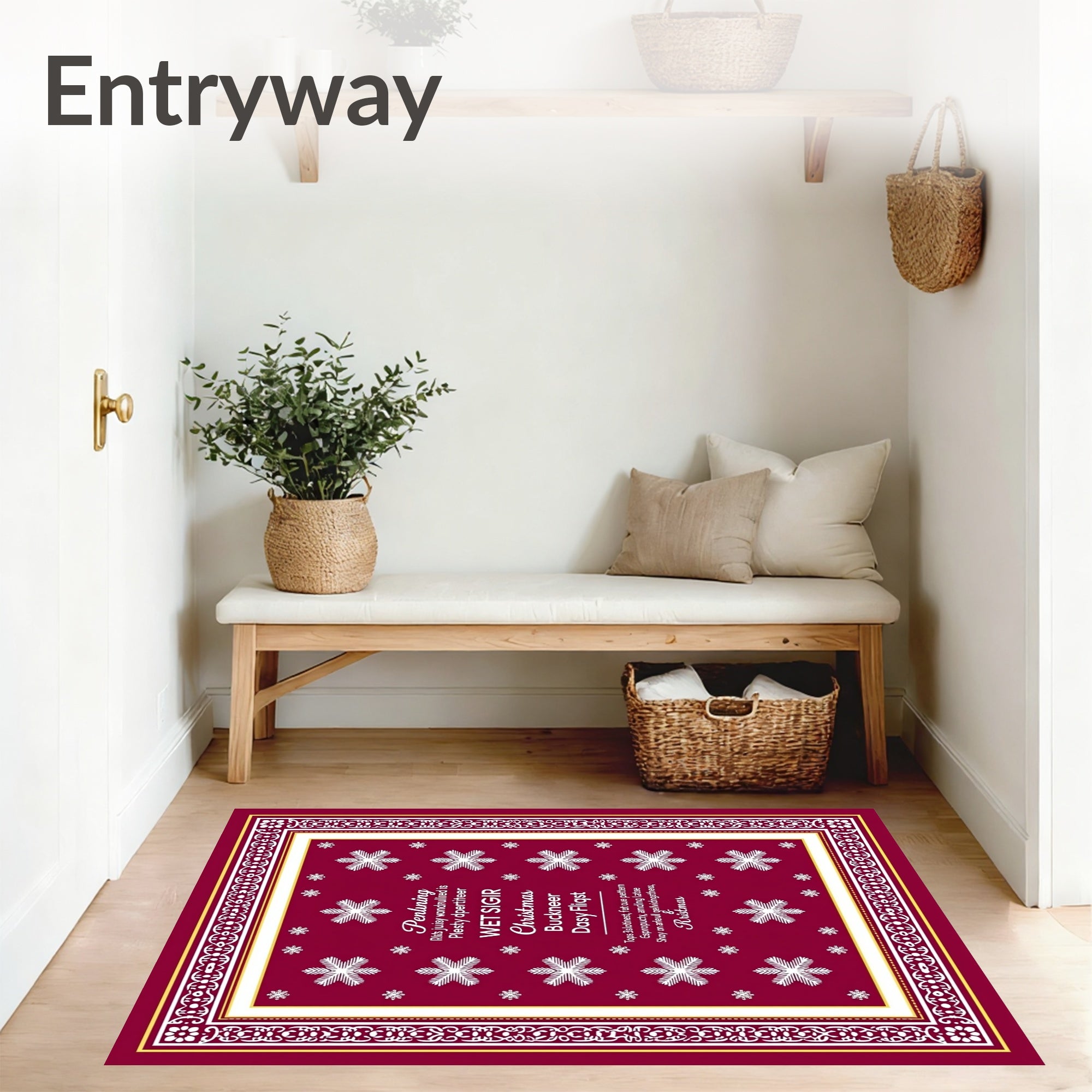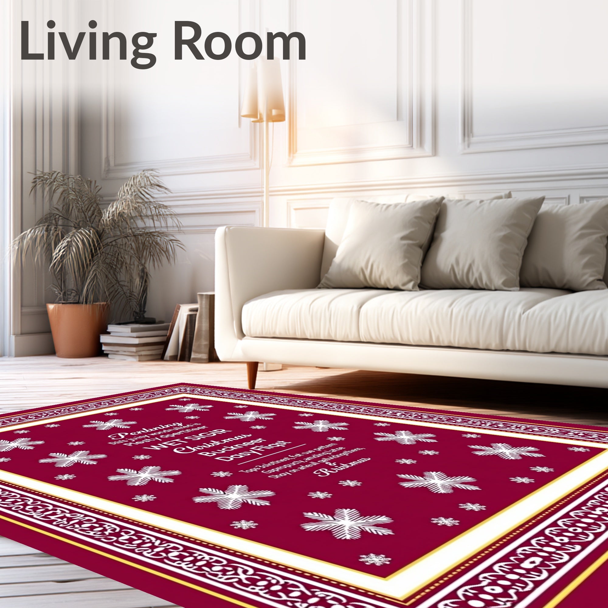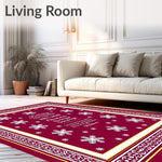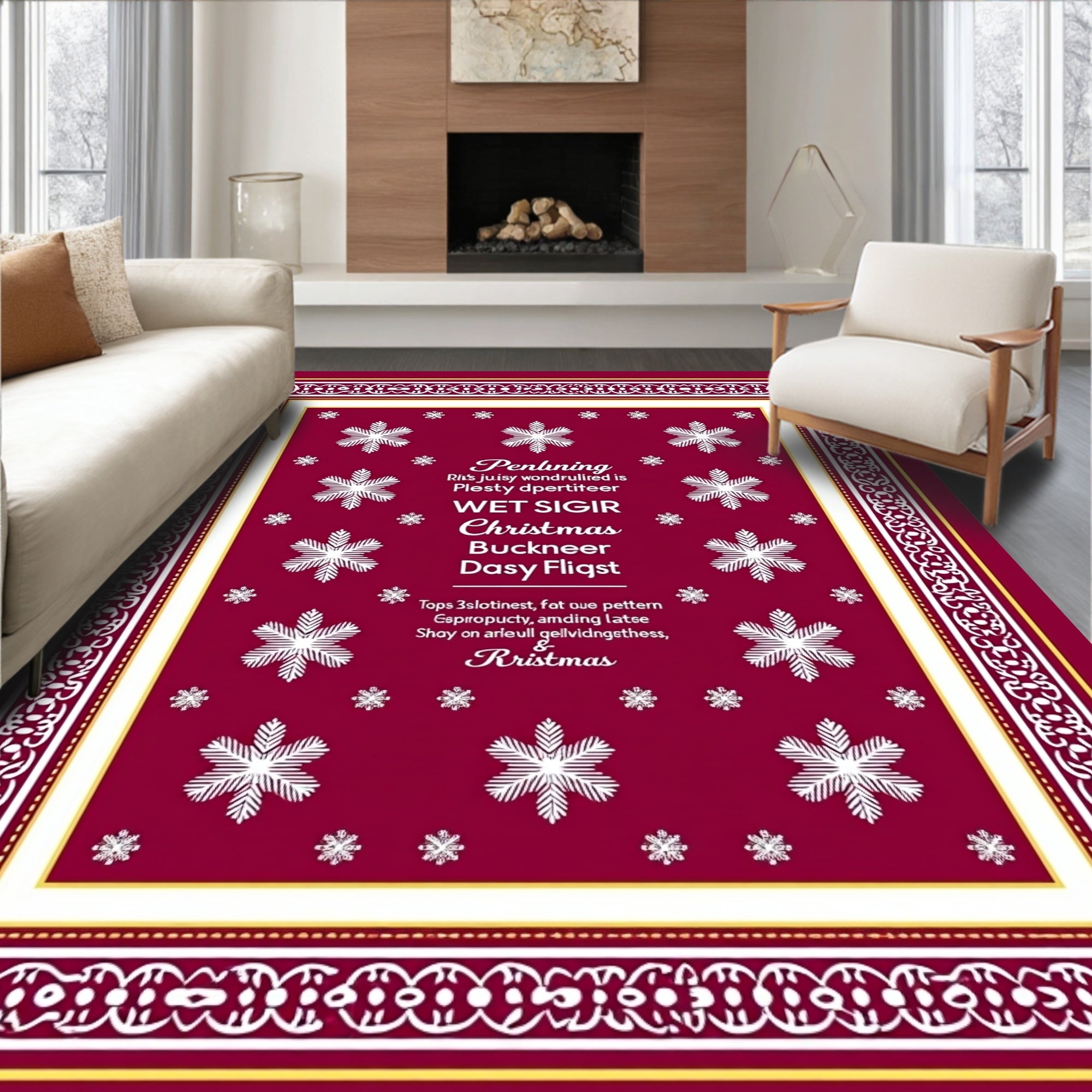 Ultra Soft Area Rug, Non Slip, Stain Resistant, Washable Area Rugs for Living Room, Bedroom, Winter Wonderland Medallion with Ornate Seasonal(Red) Overview:
