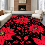 Ultra Soft Area Rug, Non Slip, Stain Resistant, Washable Area Rugs for Living Room, Bedroom, Winter Wonderland Poinsettia Bloom Design(Red) Overview: