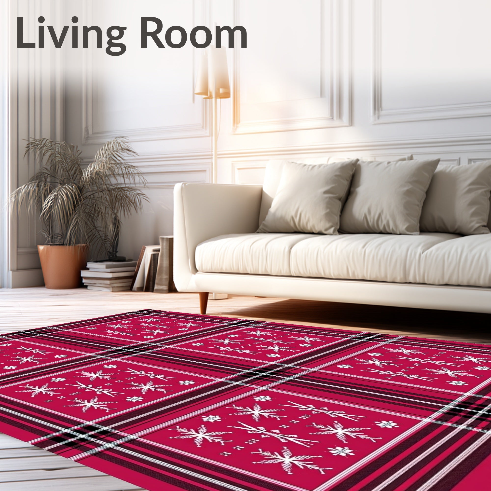 Ultra Soft Area Rug, Non Slip, Stain Resistant, Washable Area Rugs for Living Room, Bedroom, Winter Wonderland Tartan Frosty Crystal Celebration(Red) Overview: