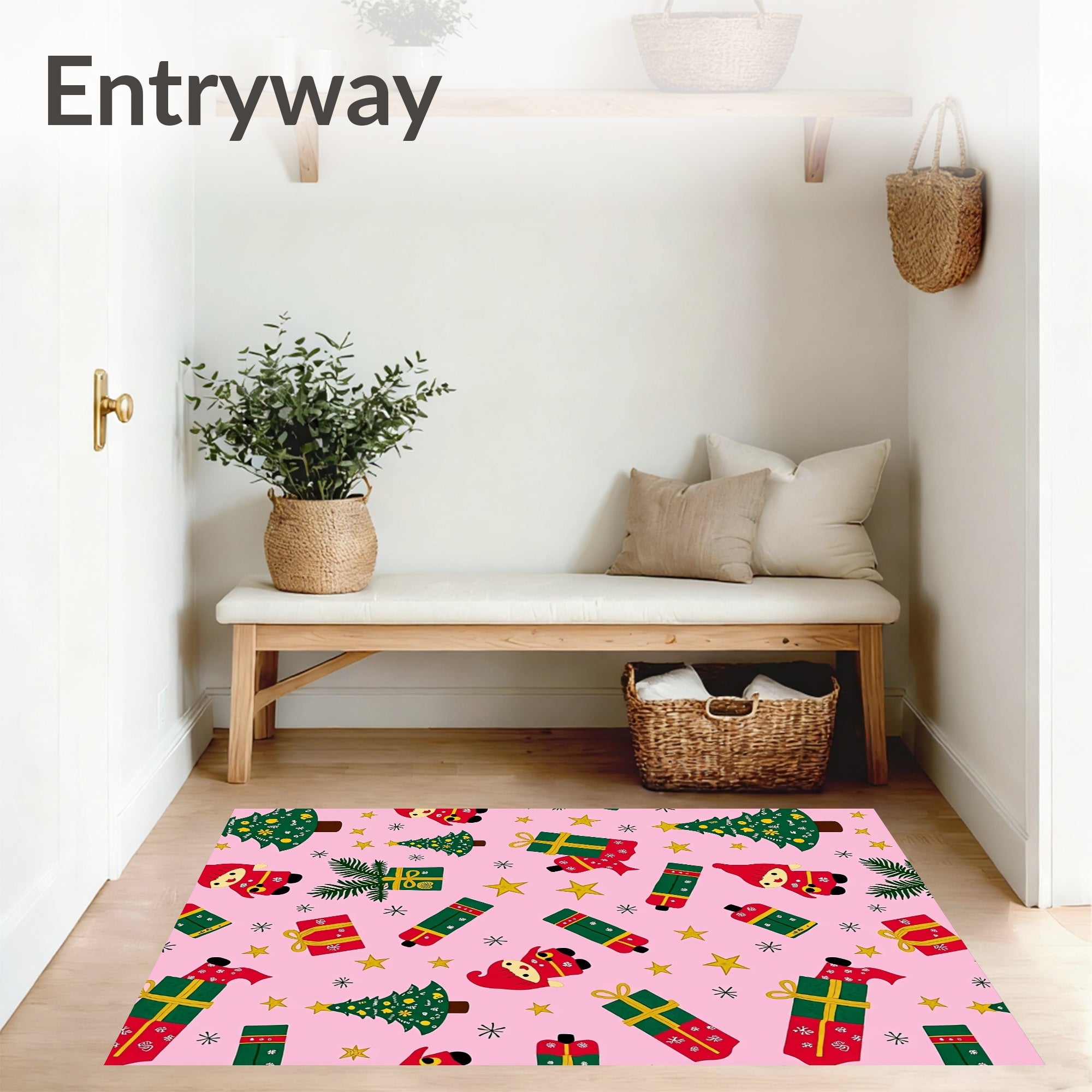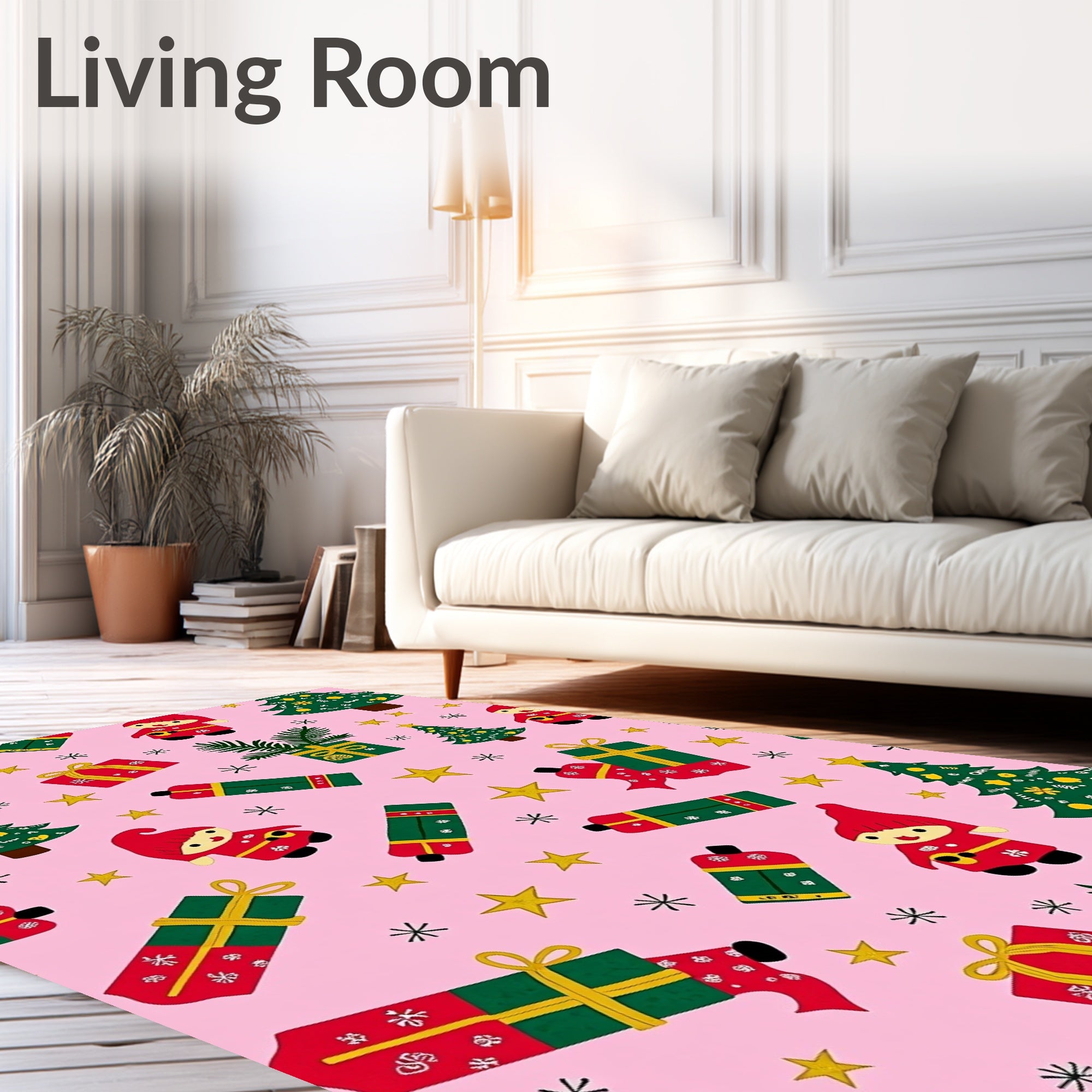 Ultra Soft Area Rug, Non Slip, Stain Resistant, Washable Area Rugs for Living Room, Bedroom, Winter Woodland Gnome Gift Box Absorbent Floor(Pink) Overview: