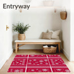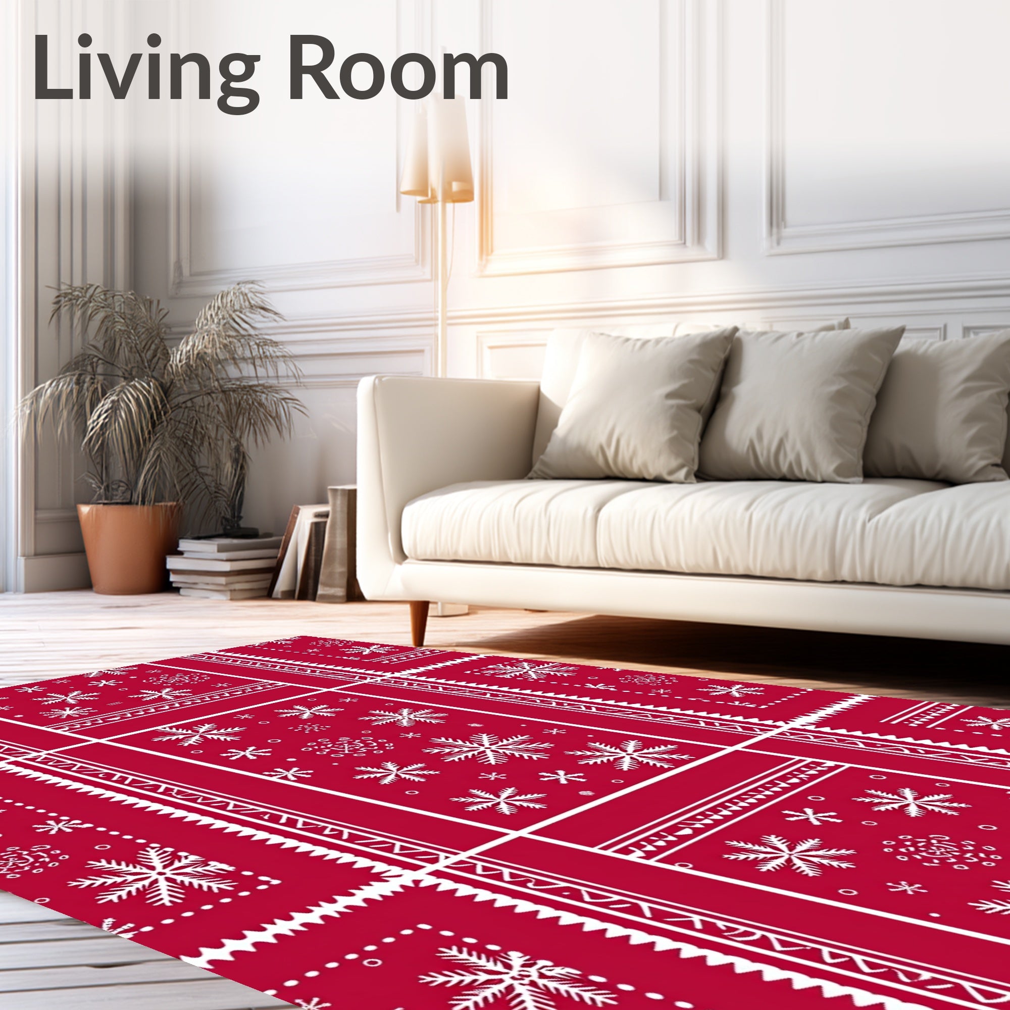 Ultra Soft Area Rug, Non Slip, Stain Resistant, Washable Area Rugs for Living Room, Bedroom, Winterberry Tartan with Snowflake Motif and Nordic Accents(Red) Overview: