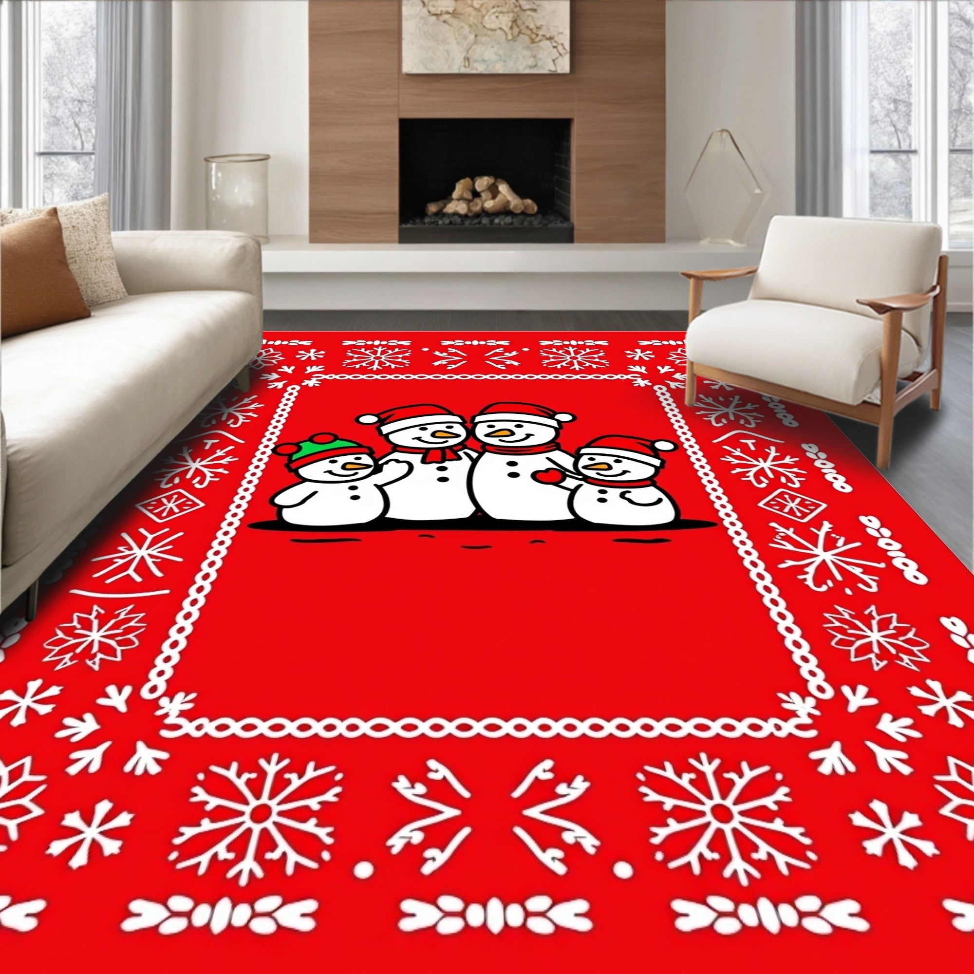Ultra Soft Area Rug, Non Slip, Stain Resistant, Washable Area Rugs for Living Room, Bedroom, Wintry Family Celebration Joyful Seasonal Spectacular Event(Red) Overview: