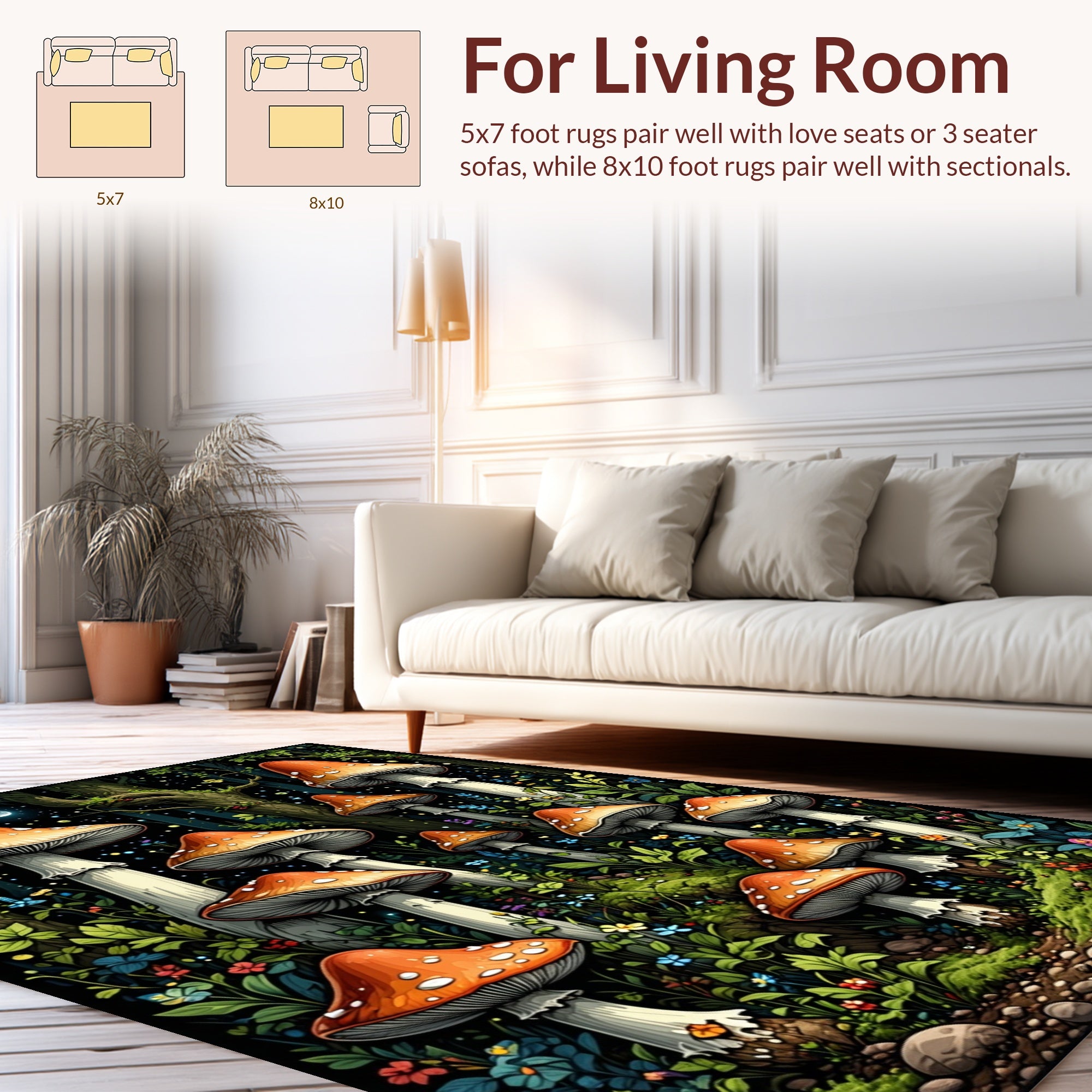 Flatwoven High Traffic Area Rug, Witchy Mushroom, Non Slip, Stain Resistant, Washable Area Rugs for Living Room, Bedroom (Orange) Overview: