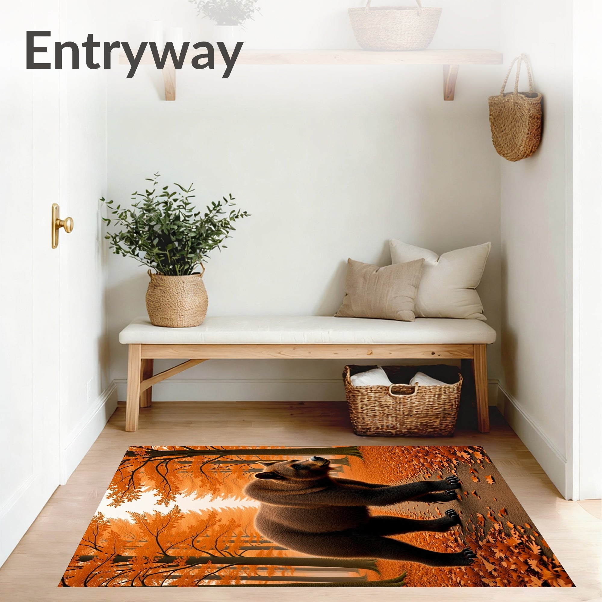 Flatwoven High Traffic Area Rug, Woodland Adventure Wild Creature Hunting Cave Embellishment, Non Slip, Stain Resistant, Washable Area Rugs for Living Room, Bedroom (Brown) Overview: