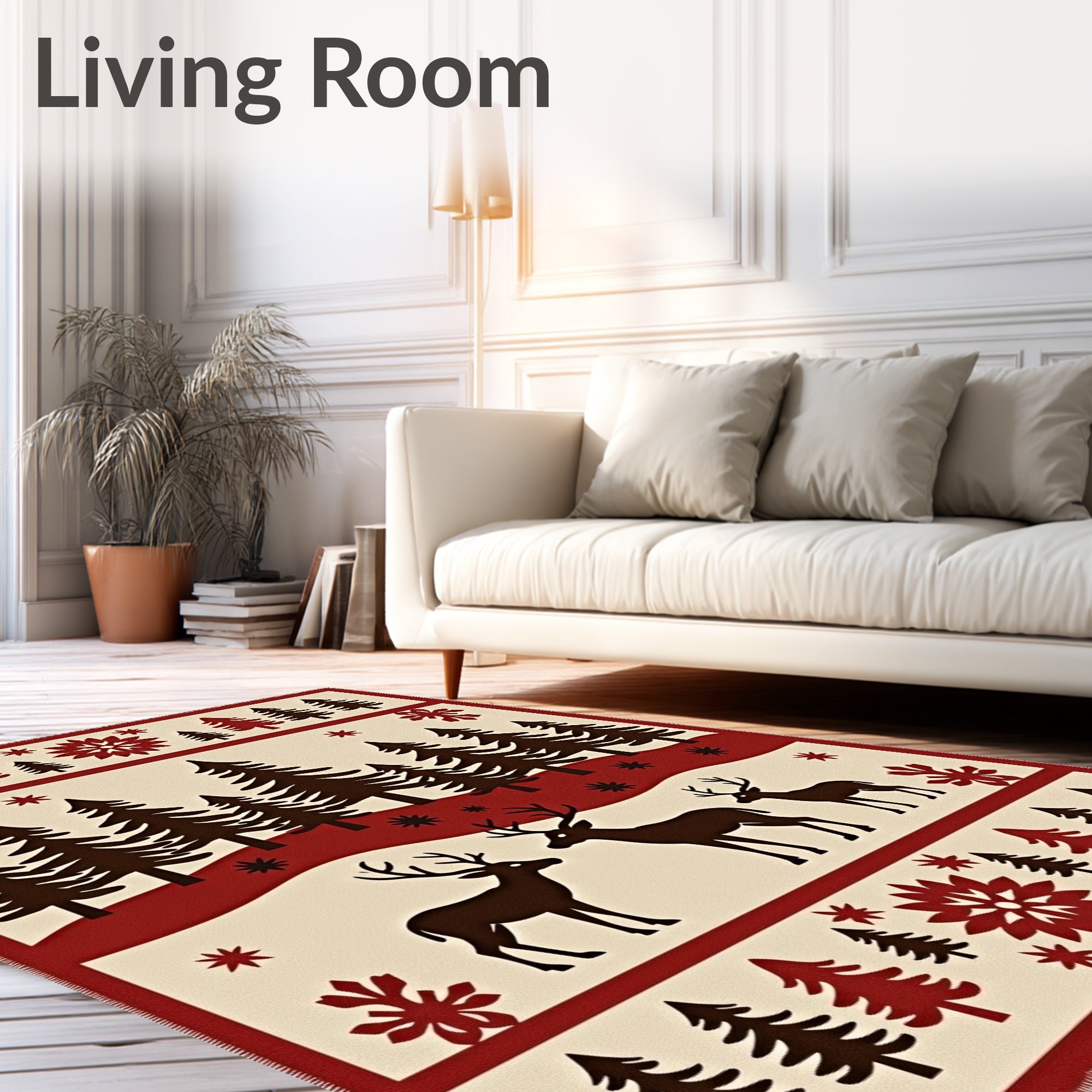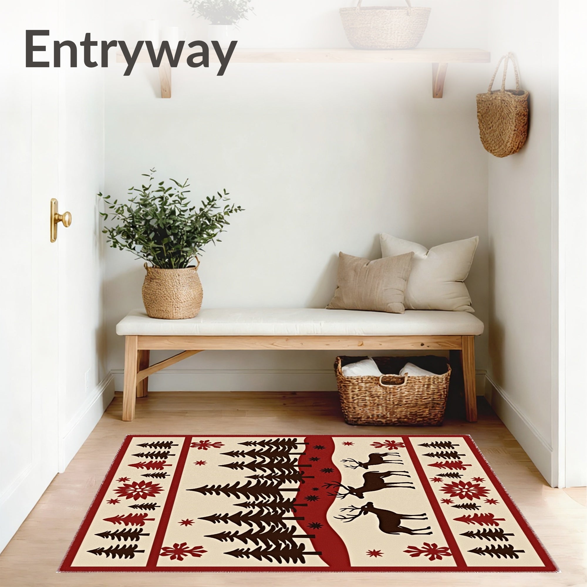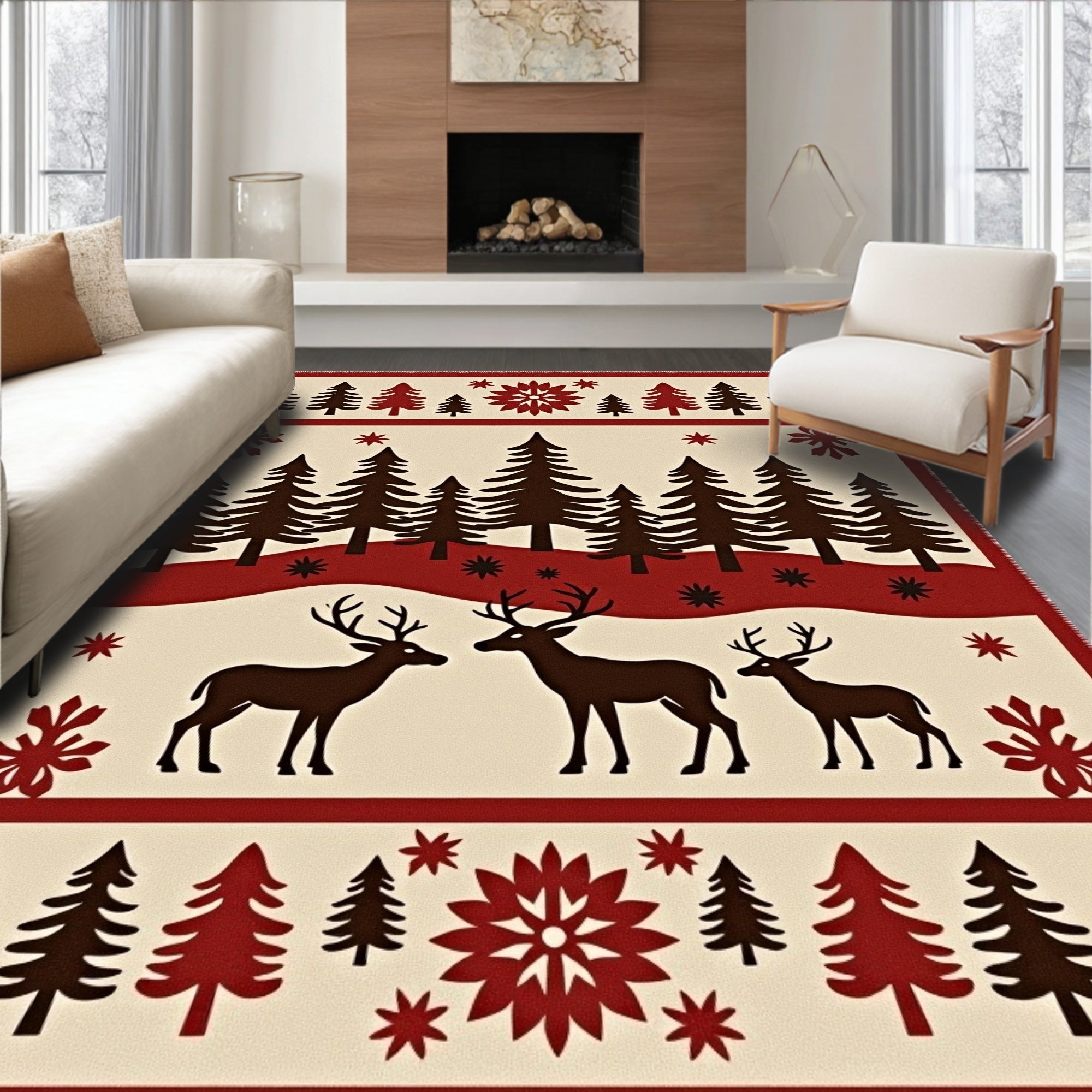 Flatwoven High Traffic Area Rug, Woodland Cabin Hearth Protection with Deer Design, Non Slip, Stain Resistant, Washable Area Rugs for Living Room, Bedroom (Brown) Overview: