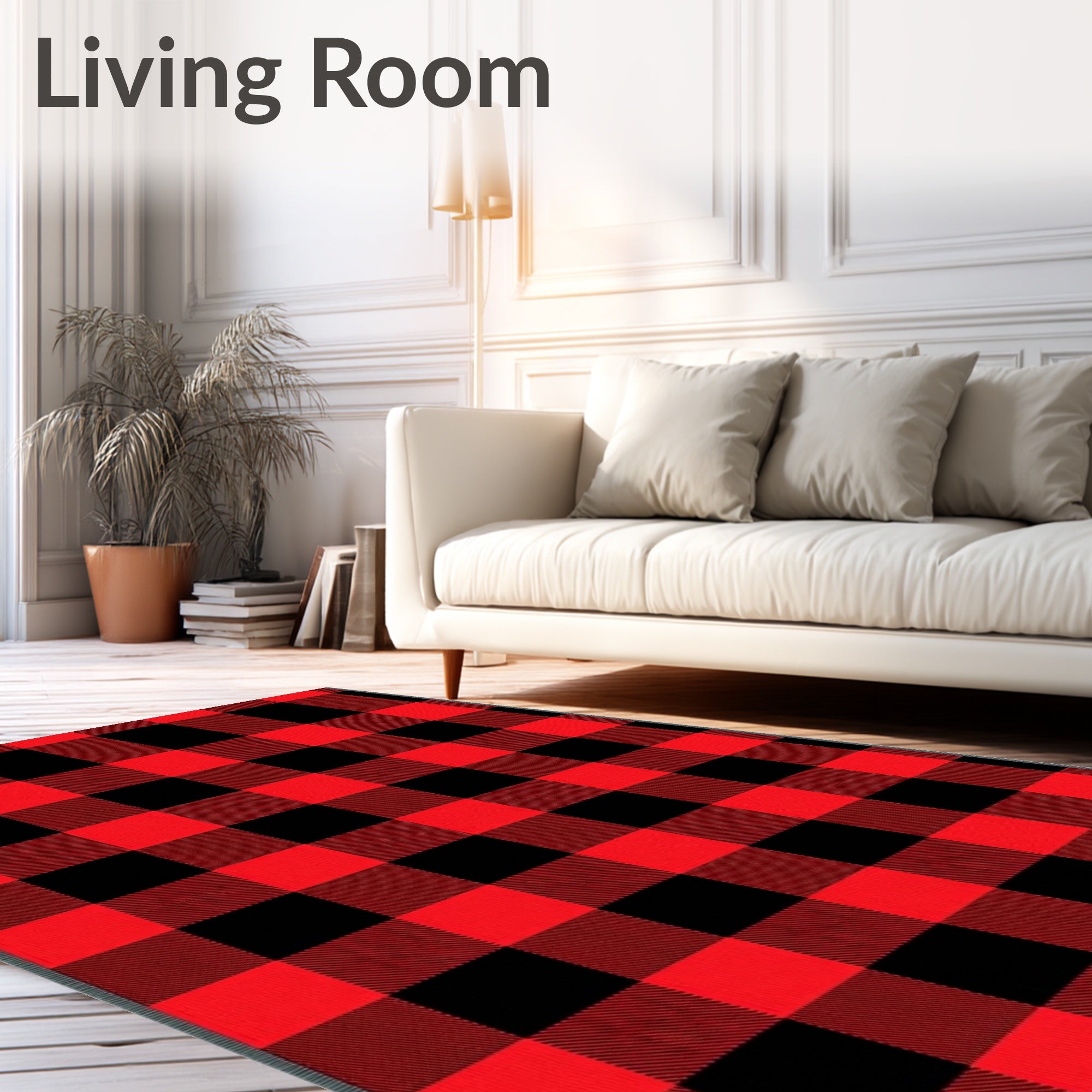 Ultra Soft Area Rug, Non Slip, Stain Resistant, Washable Area Rugs for Living Room, Bedroom, Woodland Crosshatch Gingham Accent(Red) Overview:
