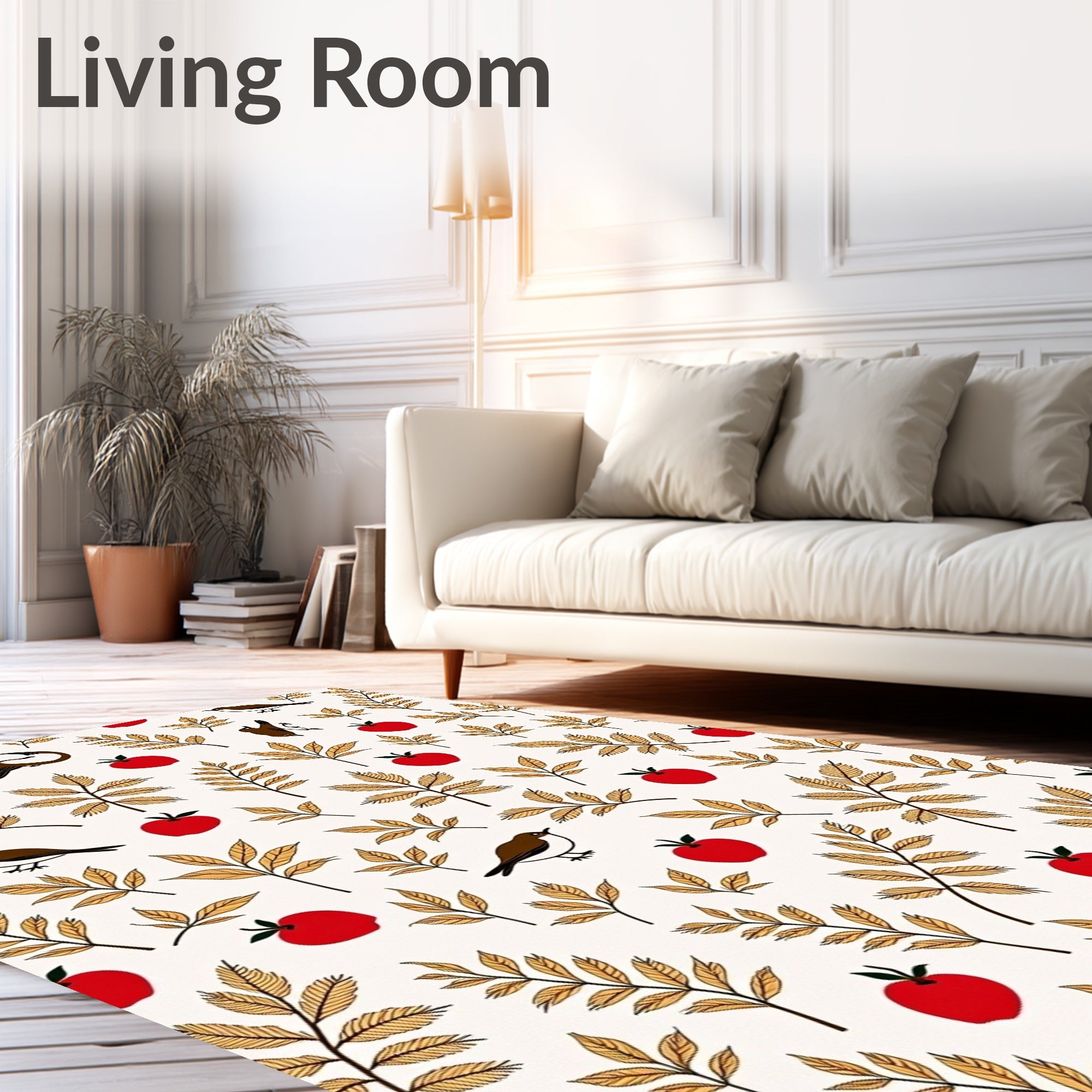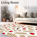 Flatwoven High Traffic Area Rug, Woodland Feathered Friends Fruit Garden Sanctuary, Non Slip, Stain Resistant, Washable Area Rugs for Living Room, Bedroom (Red) Overview: