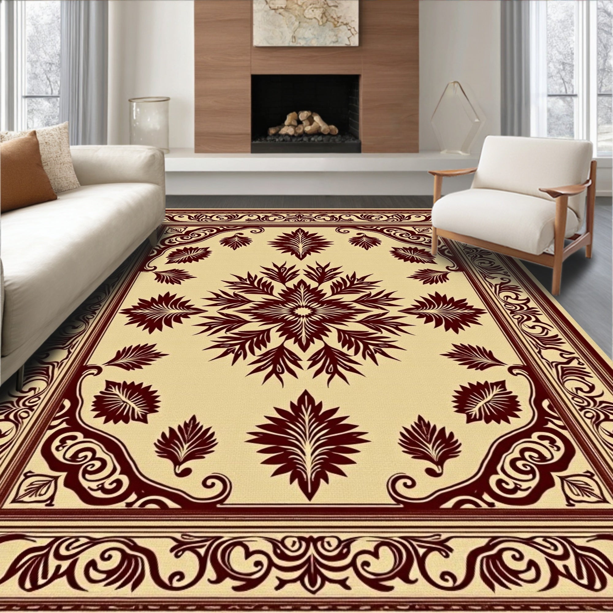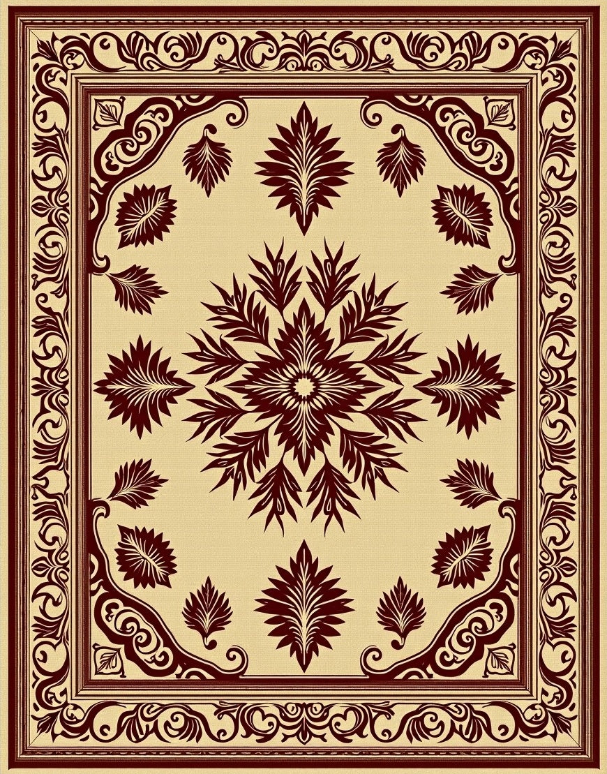 Ultra Soft Area Rug, Non Slip, Stain Resistant, Washable Area Rugs for Living Room, Bedroom, Woodland Leaf Medallion Embroidery Decorative Artistic(Beige) Overview: