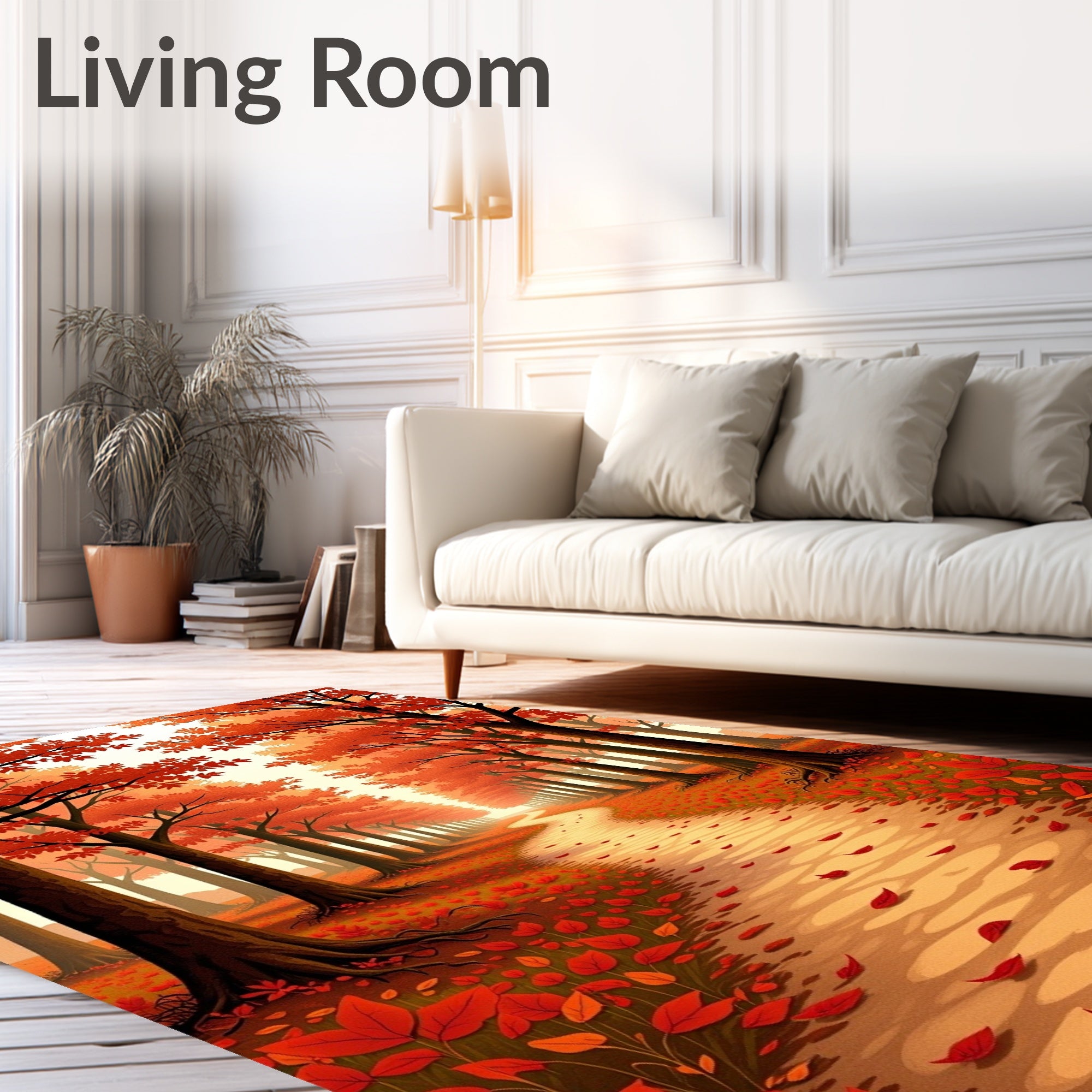 Ultra Soft Area Rug, Non Slip, Stain Resistant, Washable Area Rugs for Living Room, Bedroom, Woodland Path Enchanted Journey Decorative Accent(Orange) Overview: